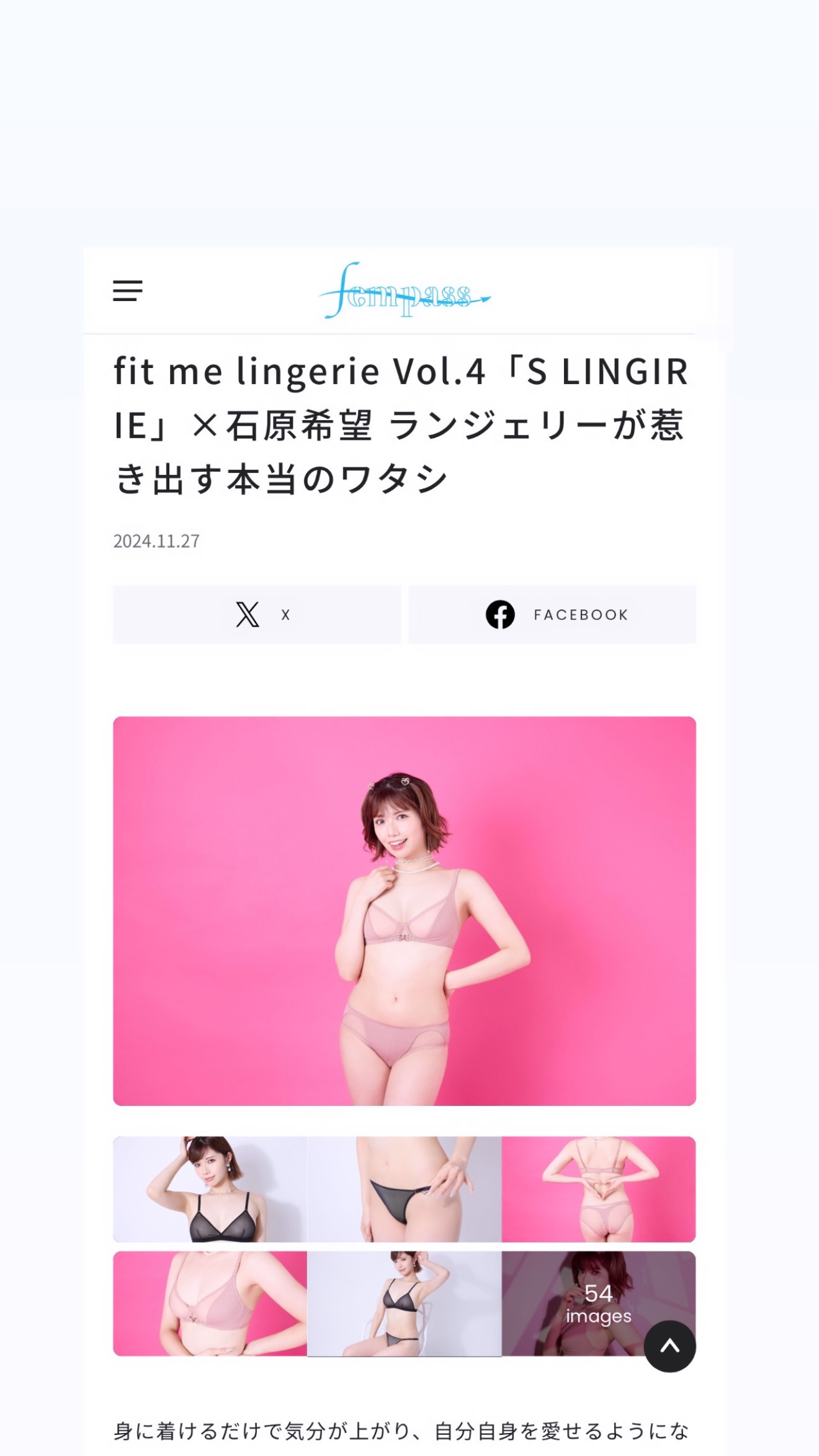 「S LINGIRIE」×石原希望 ランジェリーが惹き出す本当のワタシ