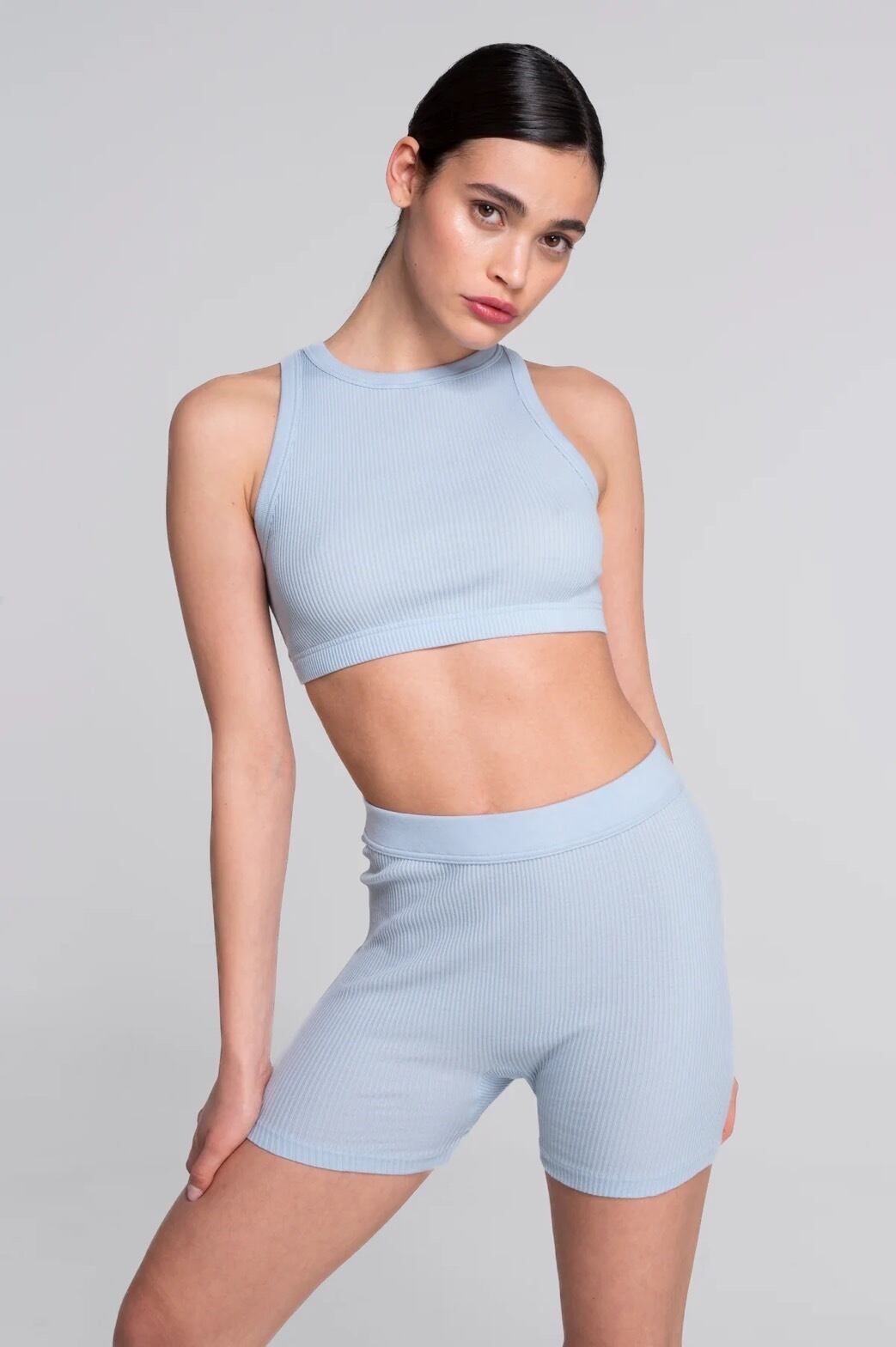 ピュアエジプシャンマコモコットンの繊細なリブニット素材を使用した、