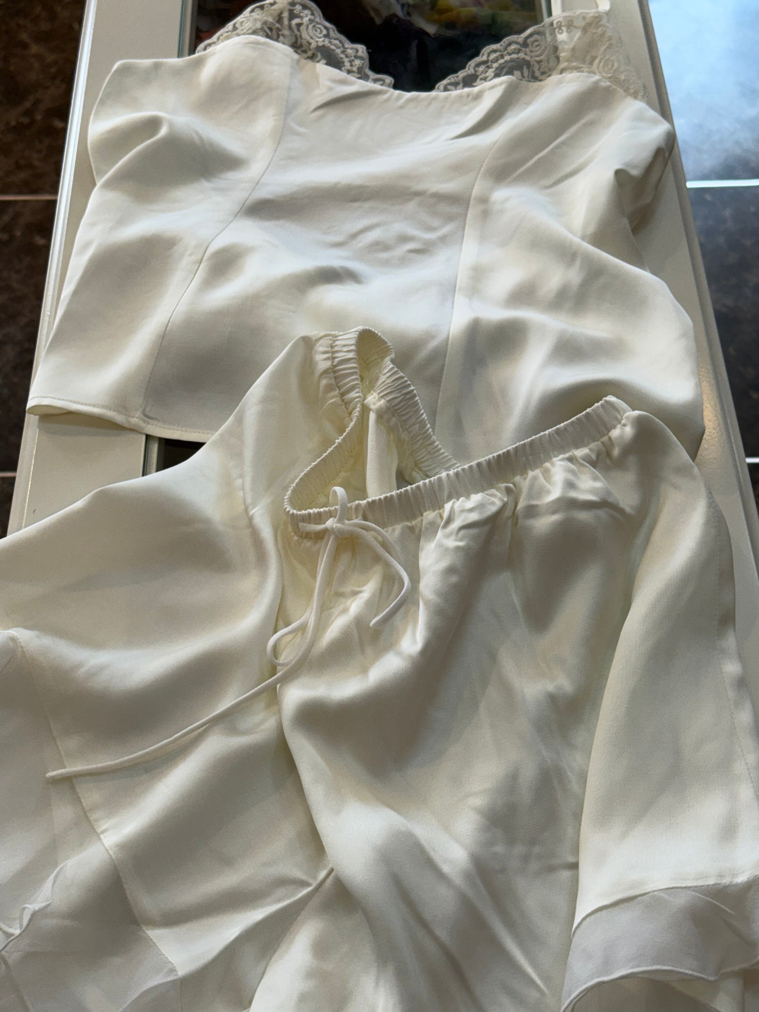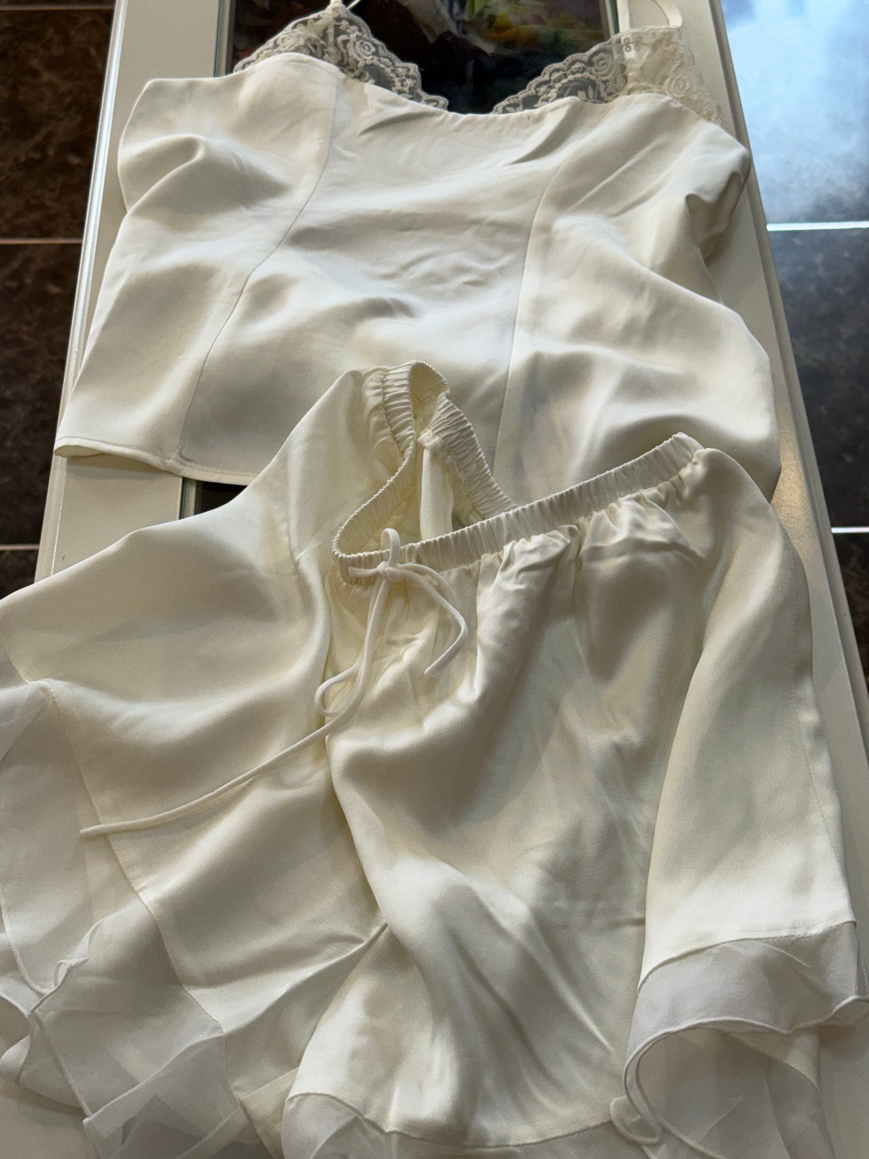 【商品名】TWIN-SET レース付きショートサテンパジャマ