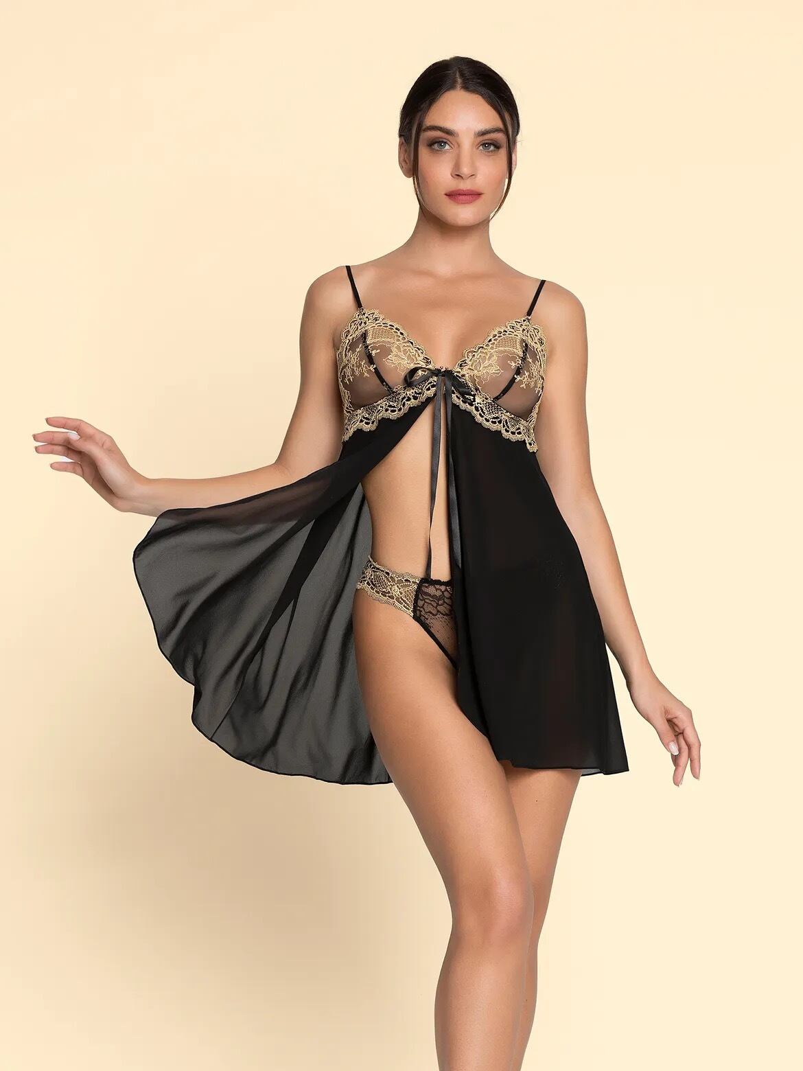 ベビードールには柔らかさと透明感に優れた、軽やかな滑らかなストレッチシルククレープ、