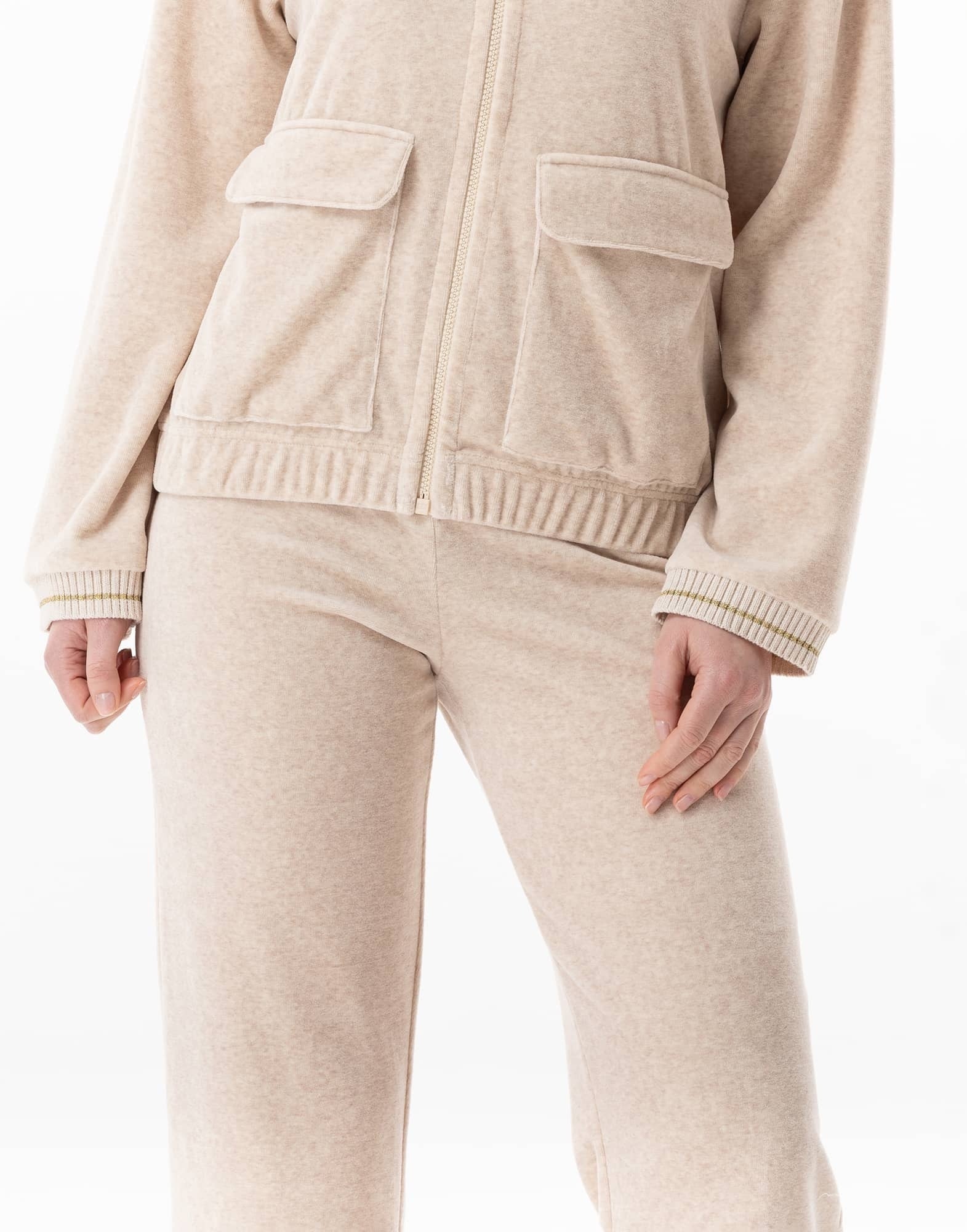 【商品名】 ベルベット ジップ付き ホームウェア セット カントリーベージュ
