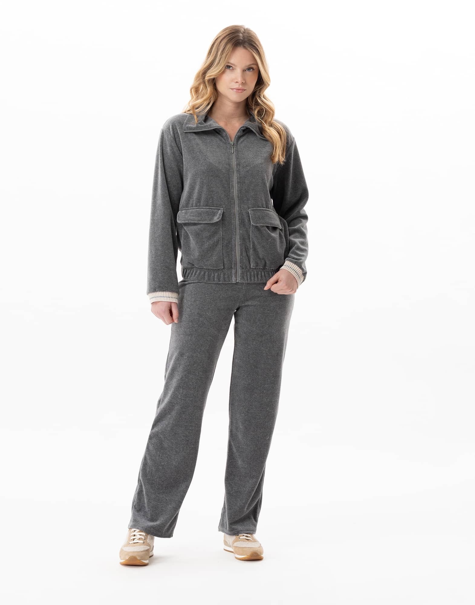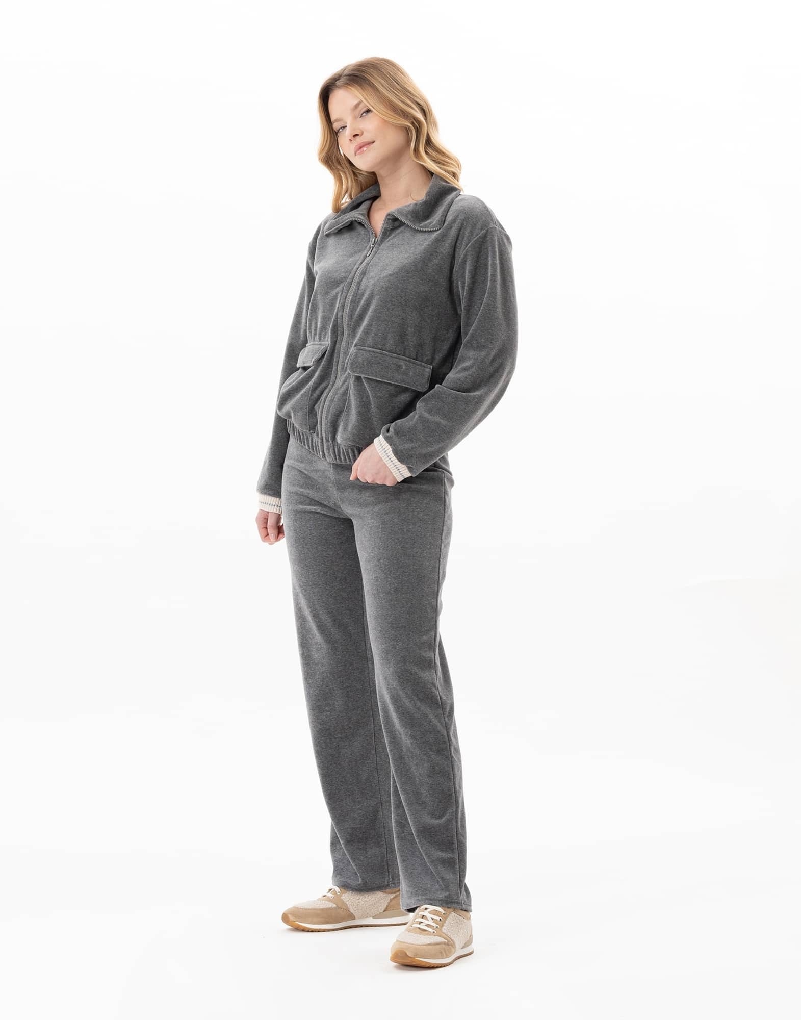 カントリー ジョギングセットは、柔らかく温かみのある包み込むようなラッセルベロア素材により、暖かさと快適さを兼ね備えています。穏やかに一日を始めるにも、家でくつろぐひとときを楽しむにも理想的な装いです。