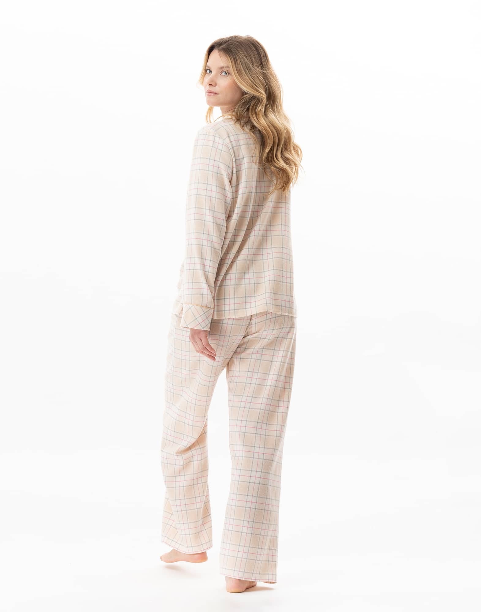 ブラッシュドフリースの快適さを、ボタン付きパジャマで。