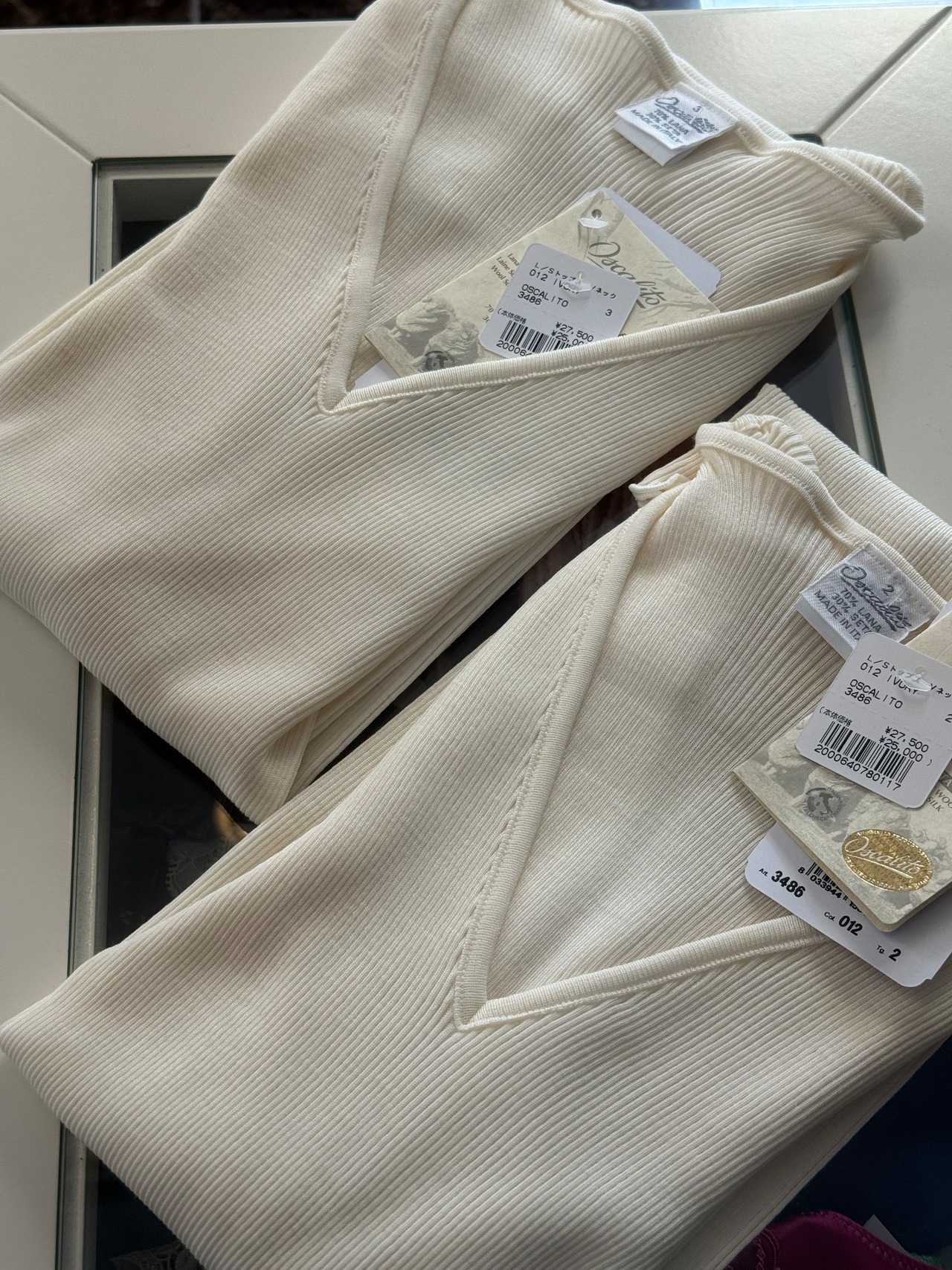 ウールシルク Vネック 長袖 アイボリー 2、3サイズ