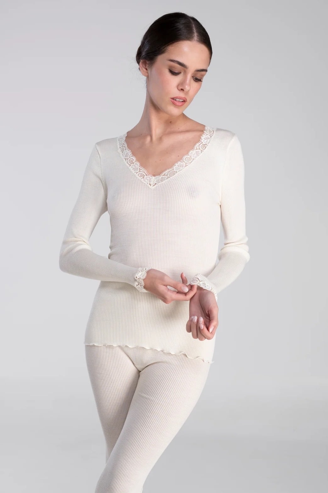 リブ編みのインナーはシワにならず、自然に身体にフィットし、ボディラインをきれいに魅せてくれます。