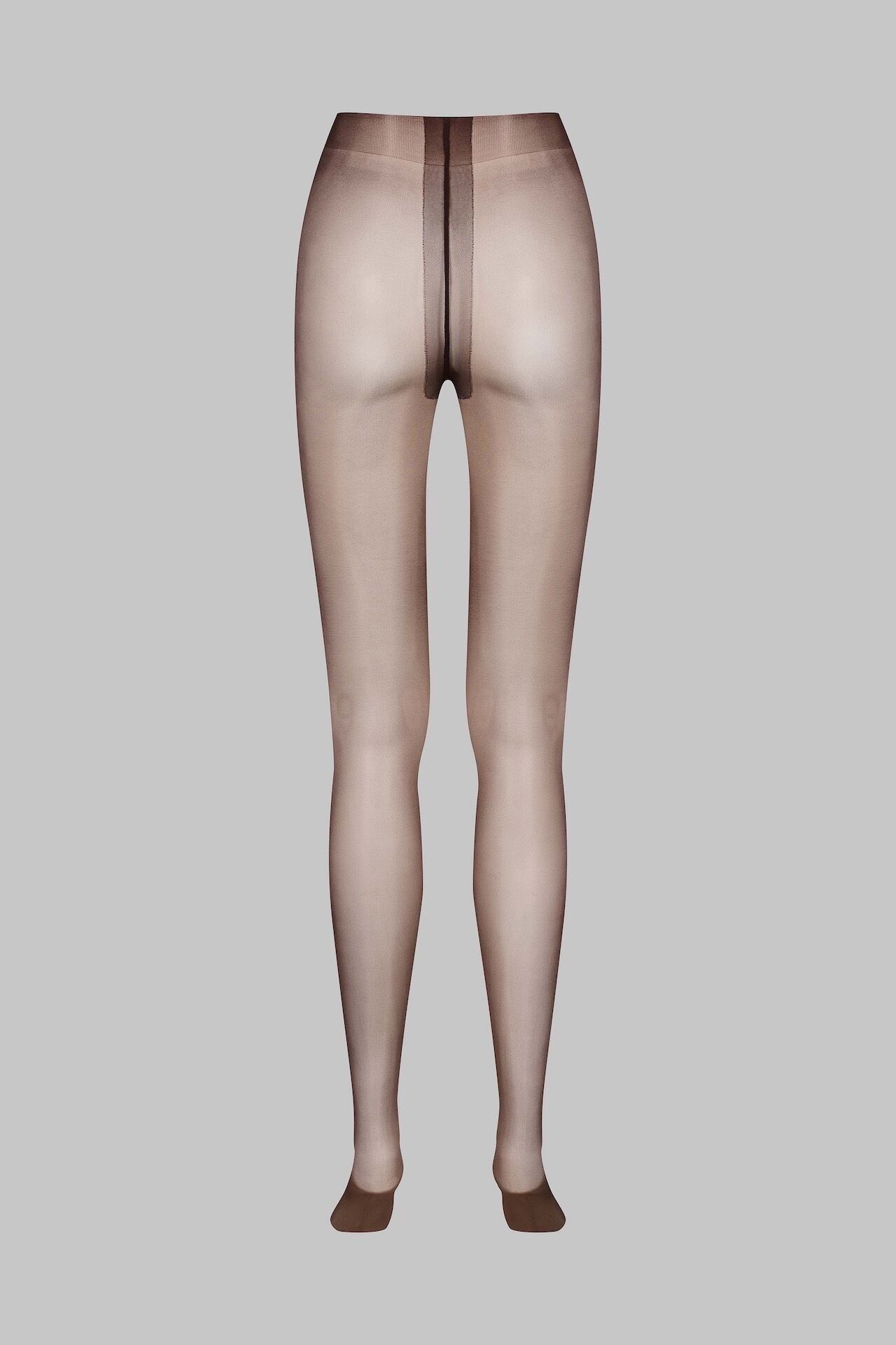 10デニールの繊細なボイル素材を使用したサテン仕上げのハイウエストタイツ。