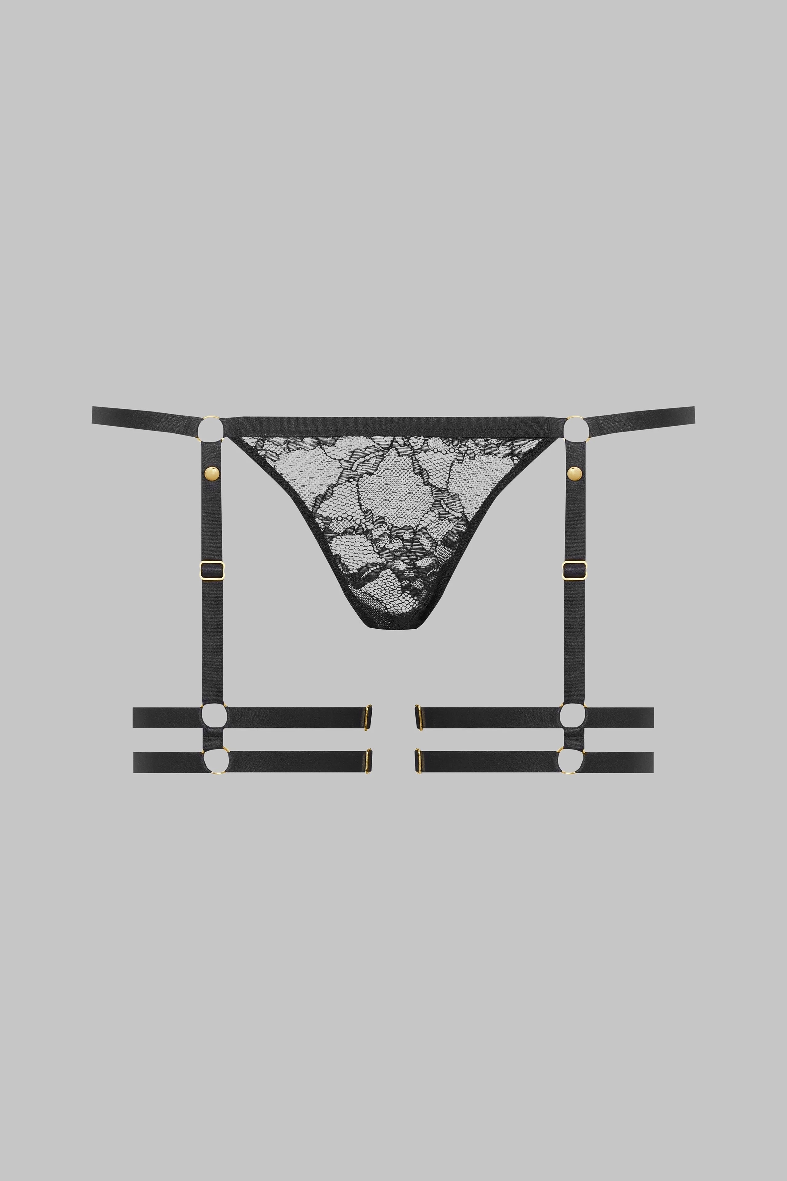 ランジェリーを遊び場へと変える。ストレッチ性のあるフローラルレースで作られ、取り外し可能で完全に調節可能なガーターが付属。