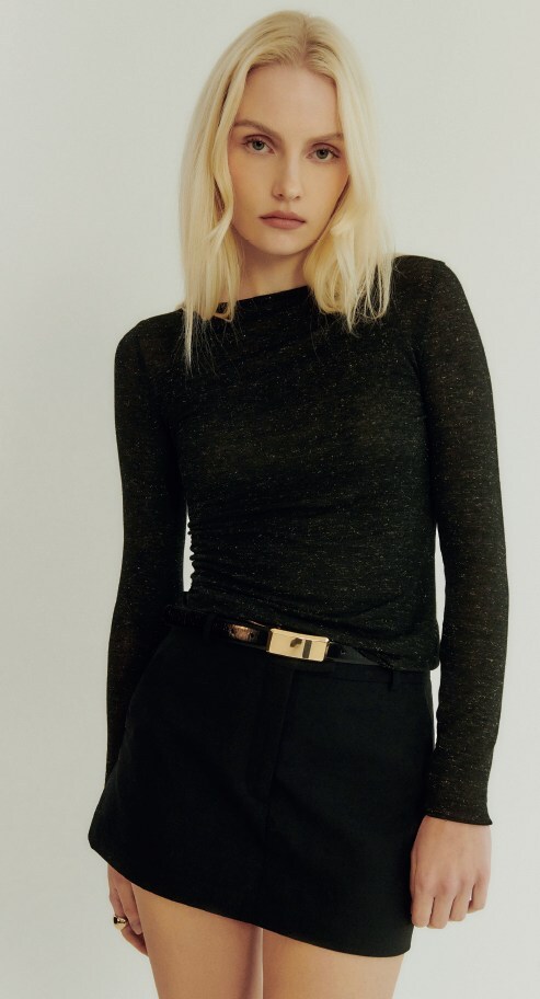リブ編みのインナーはシワにならず、自然に身体にフィットし、ボディラインをきれいに魅せてくれます。