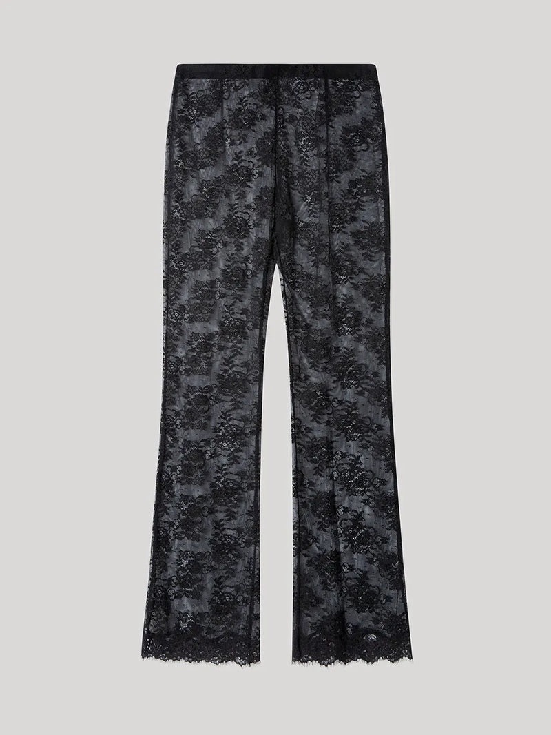 透け感のある繊細なフローラルレースのストレッチロングパンツ