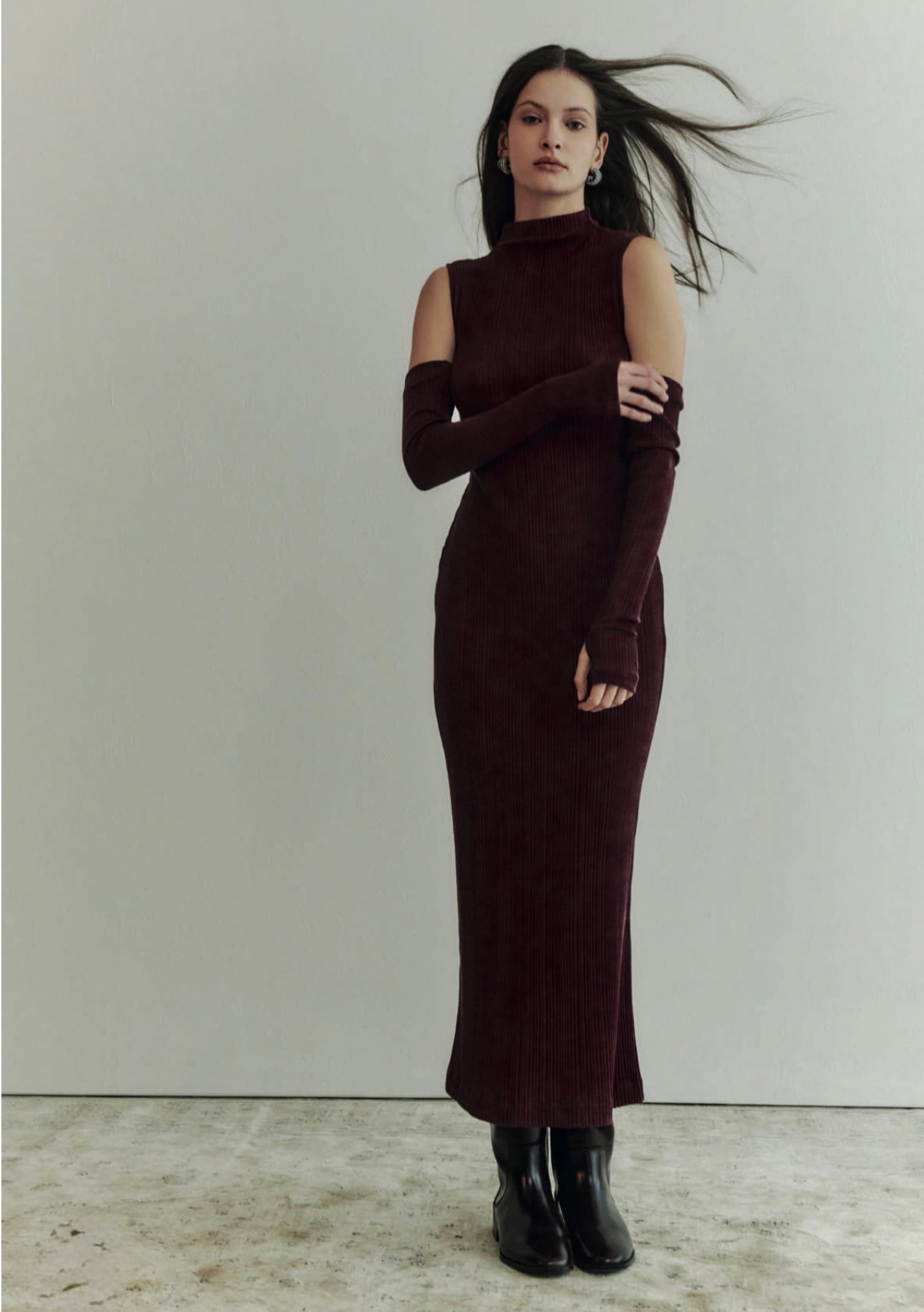 リブ編みのインナーはシワにならず、自然に身体にフィットし、ボディラインをきれいに魅せてくれます。