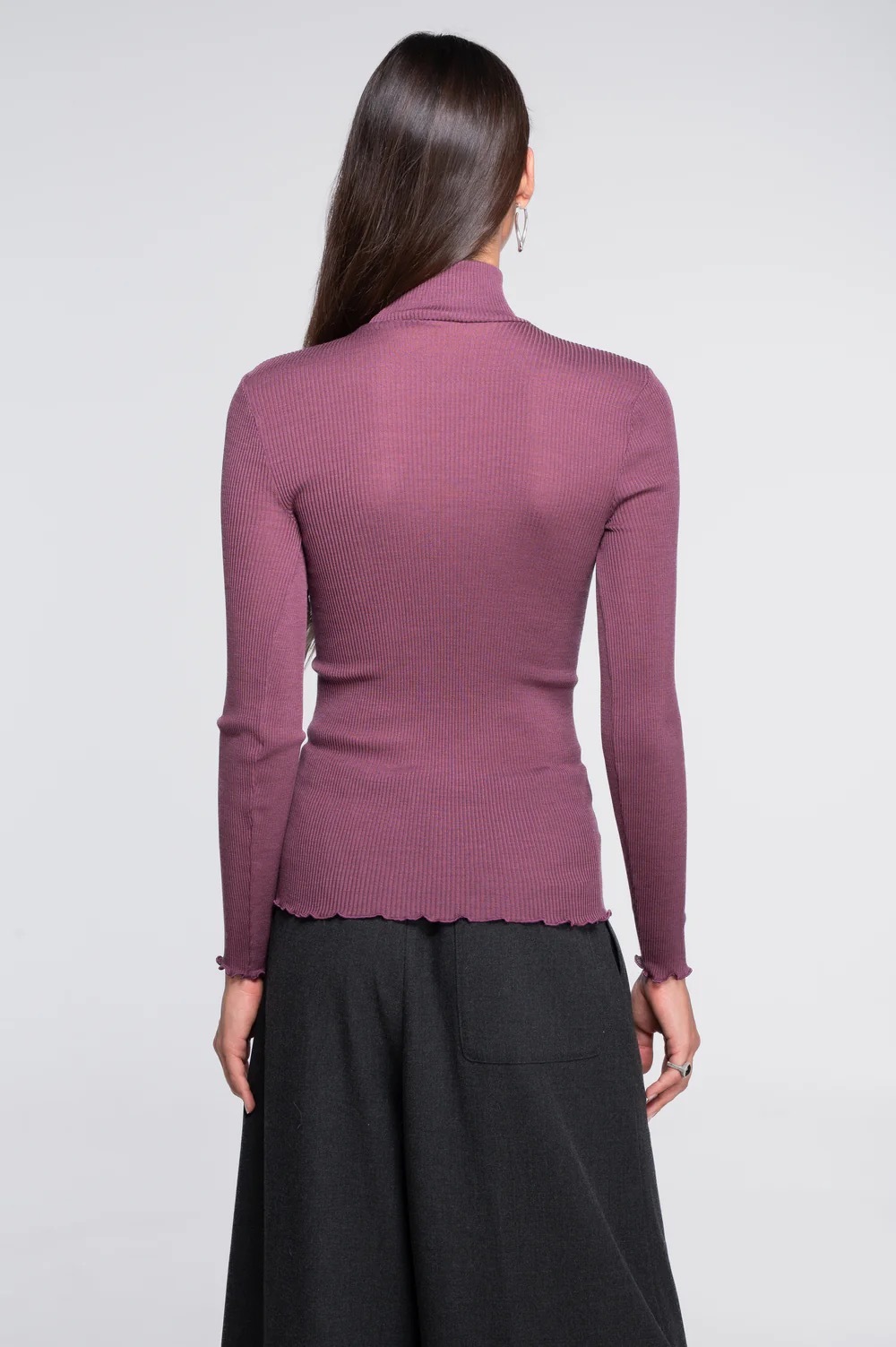 リブ編みのインナーはシワにならず、自然に身体にフィットし、ボディラインをきれいに魅せてくれます。