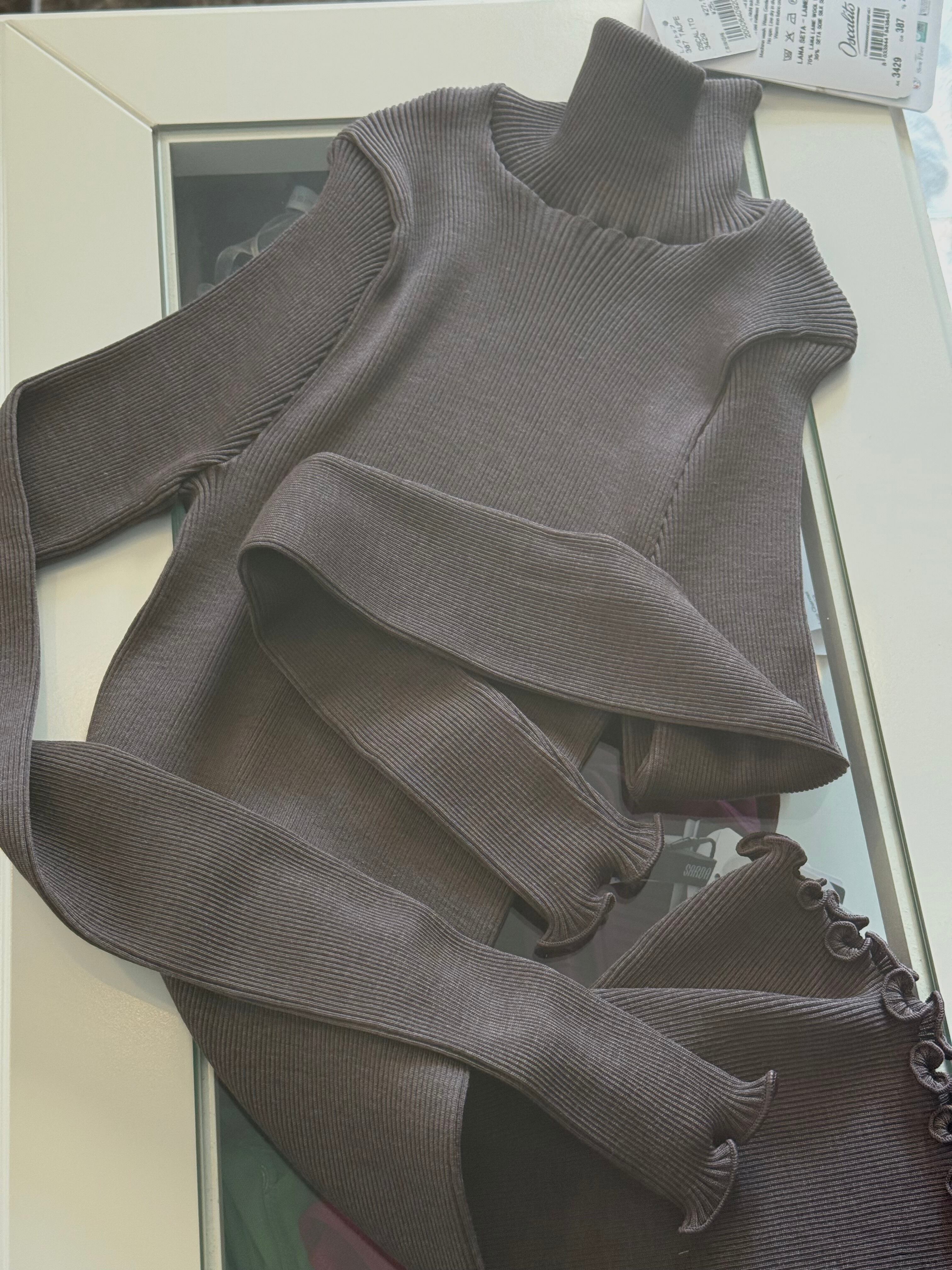 リブ編みのインナーはシワにならず、自然に身体にフィットし、ボディラインをきれいに魅せてくれます。