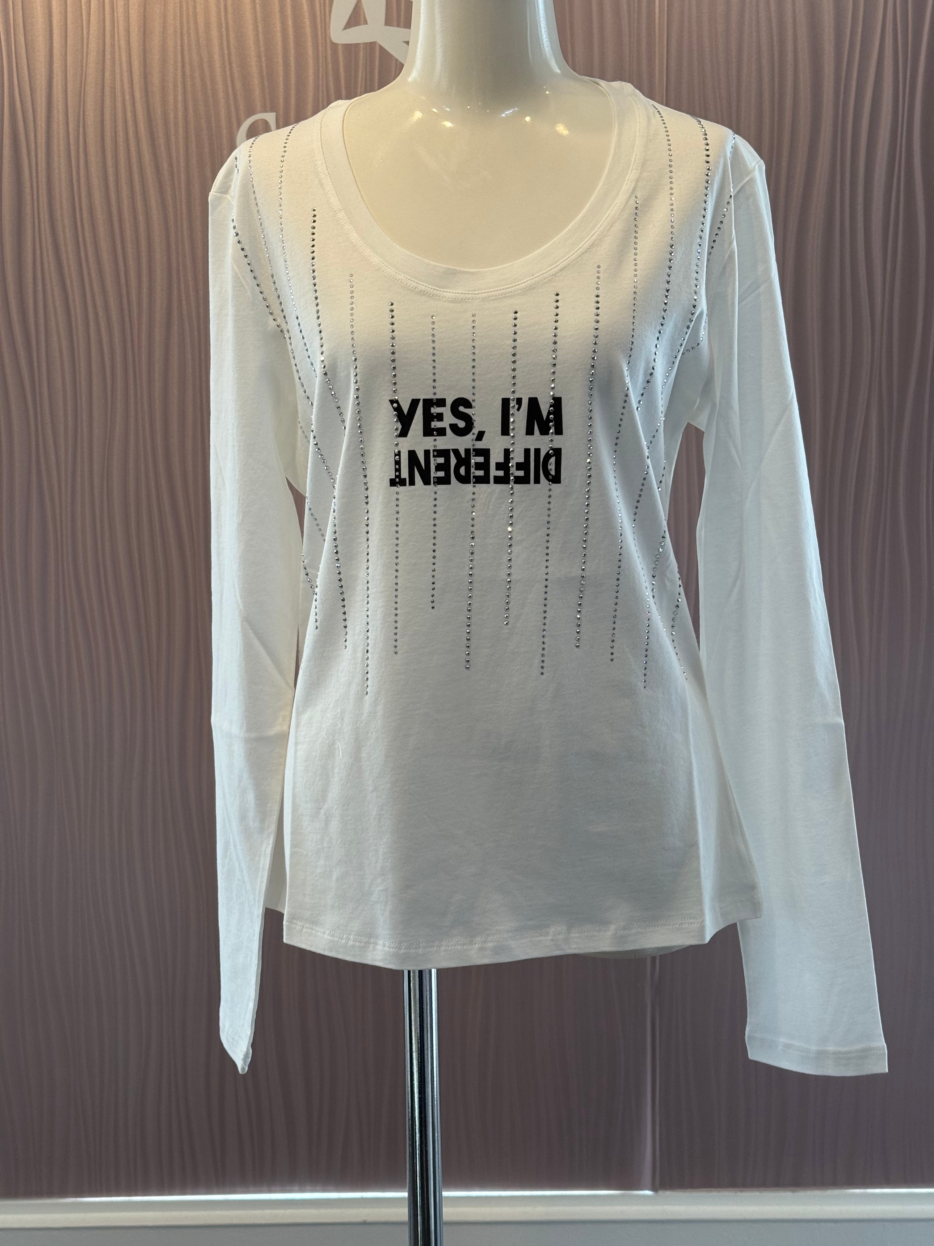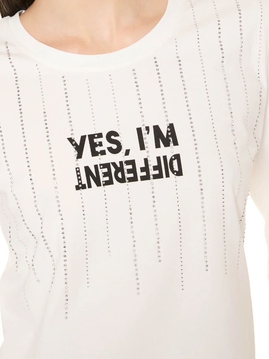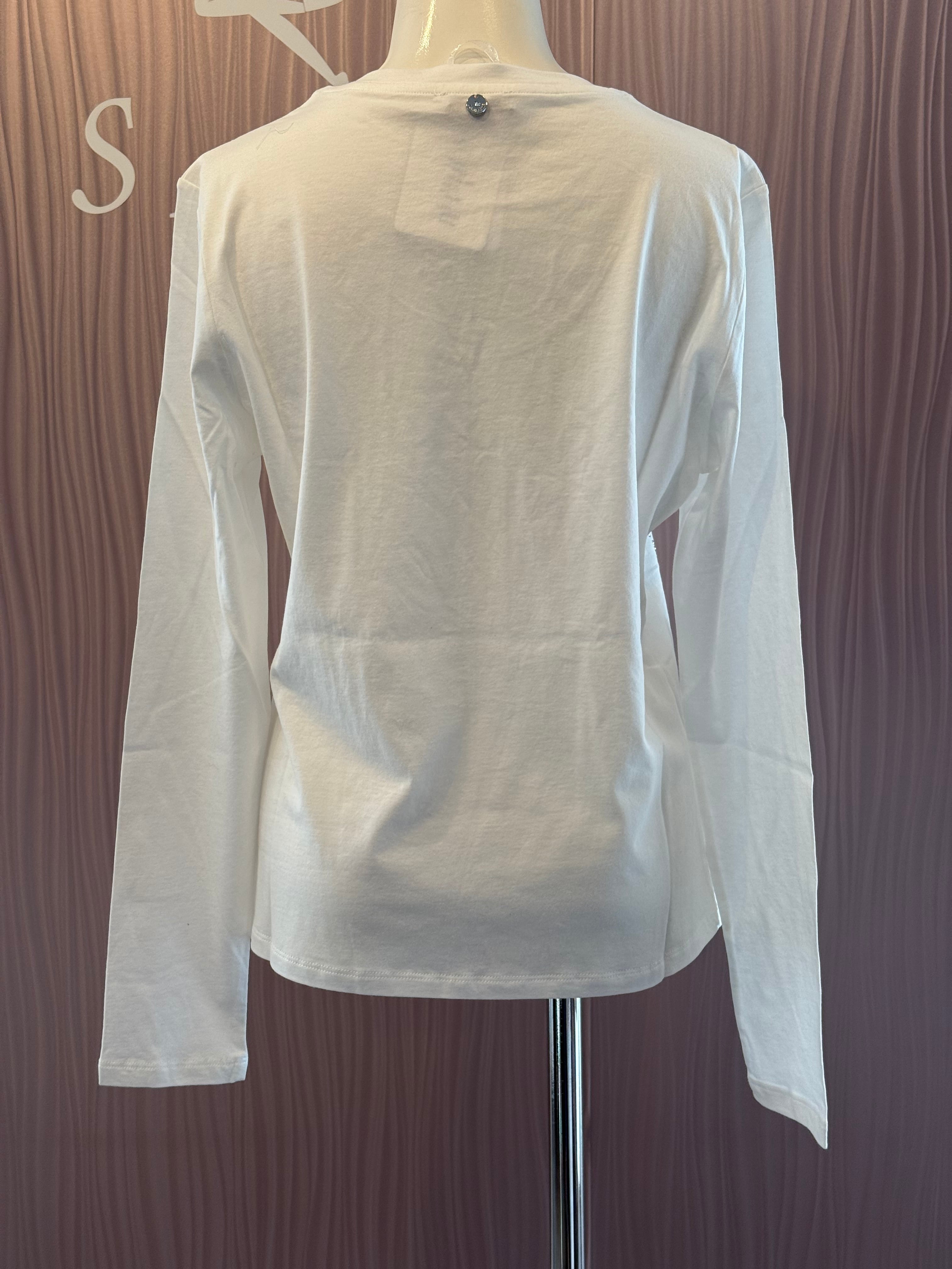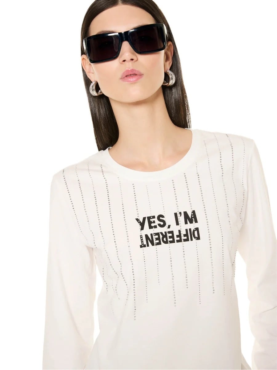 コットン製の長袖シャツは、フロントのプリントと小さなラインストーンが特徴で、デザインに輝きと現代的なタッチを加えています。コットン生地は、日常使いに快適さと実用性を保証します。