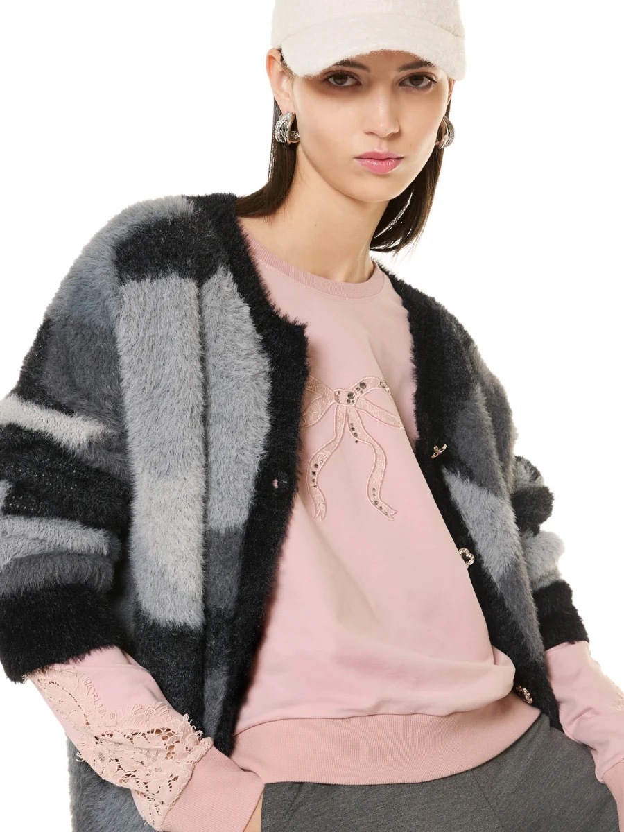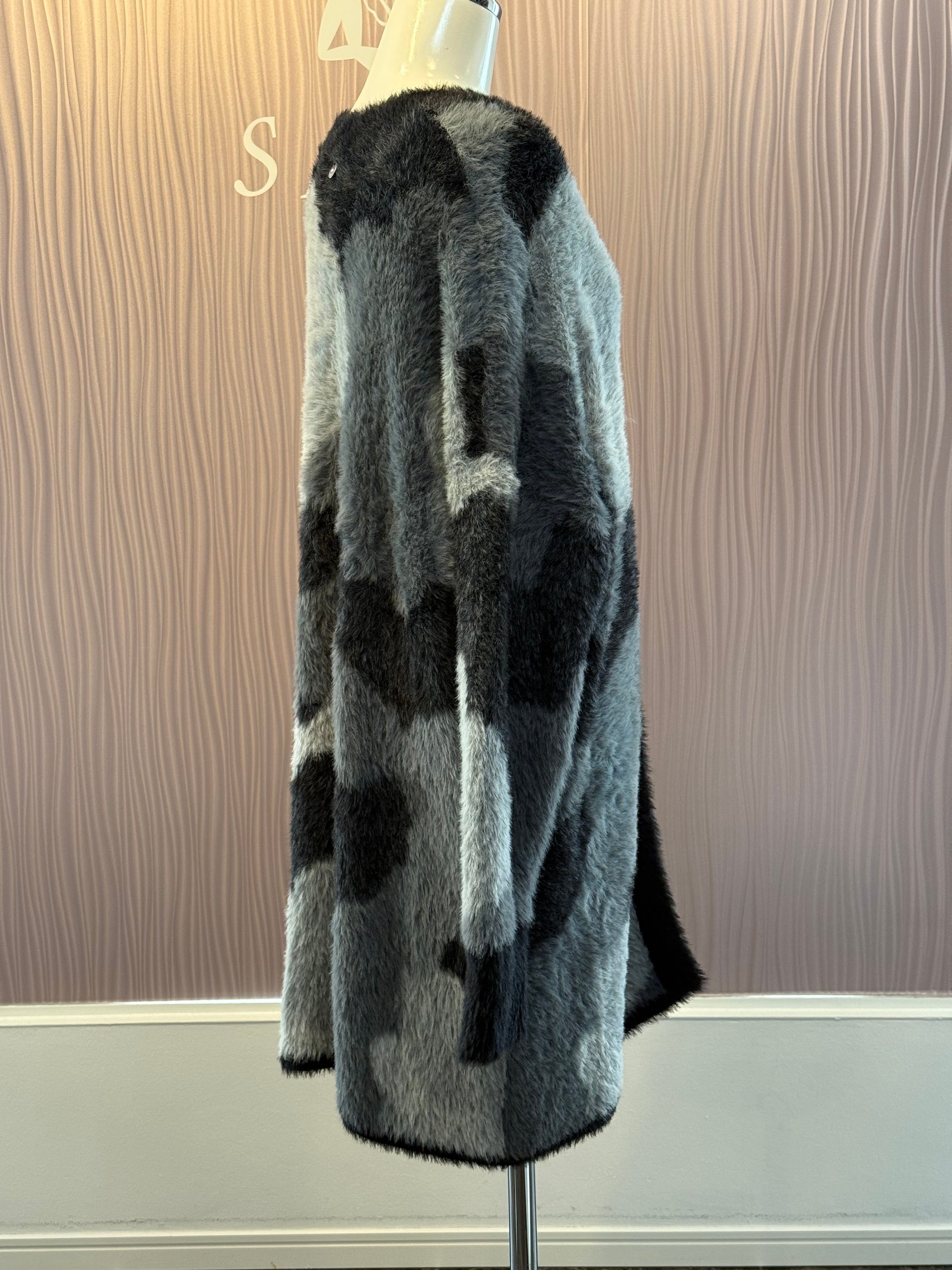ロングカーディガンは、柔らかく厚手の生地で作られており、寒い日に暖かさと快適さを提供します。ジュエリーボタンが輝きと洗練されたディテールを加え、このアイテムを際立たせ、オリジナルな存在にしています。