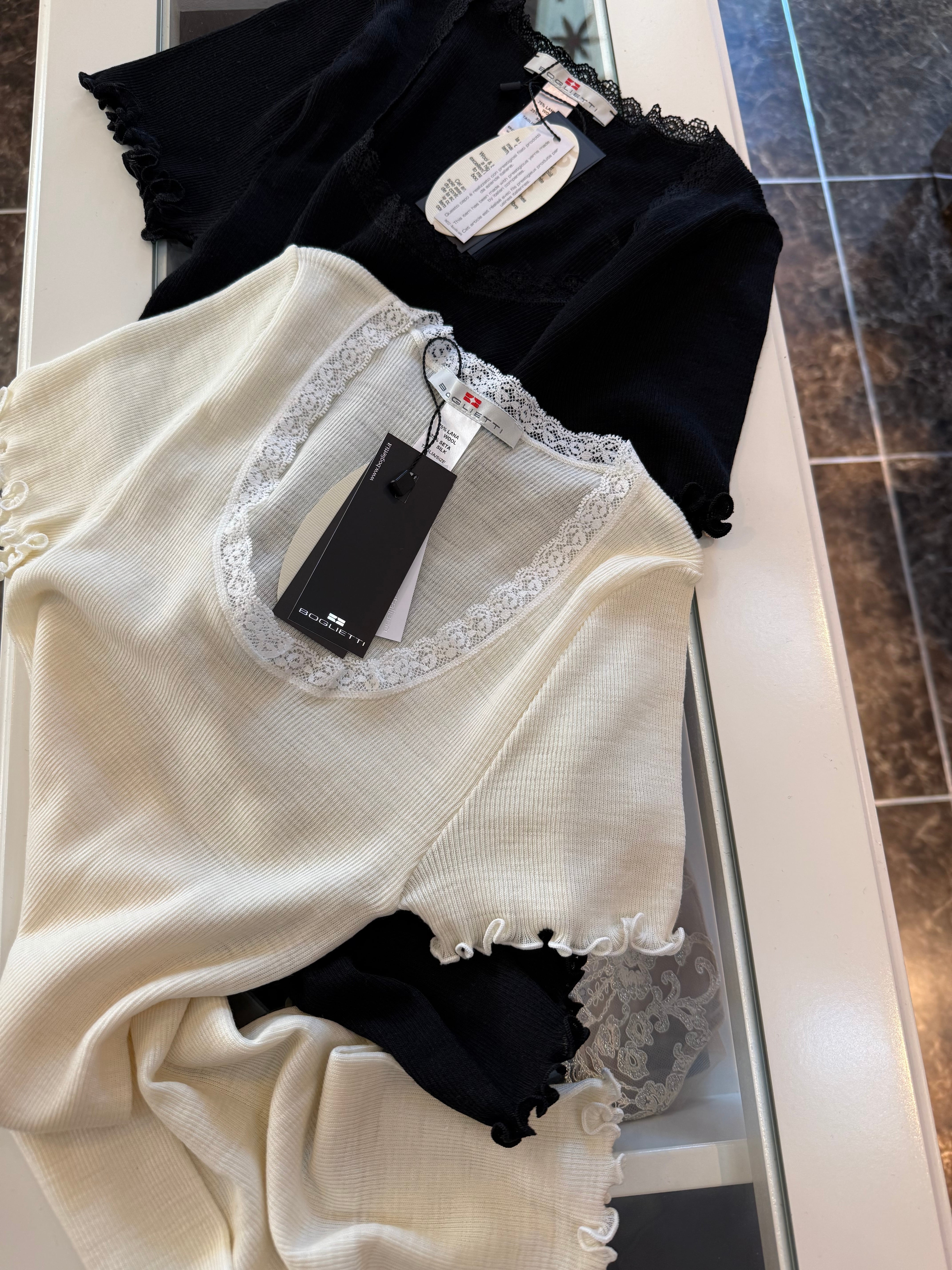Boglietti ウールシルク半袖 レースあり ブラック、オフホワイトの2色展開