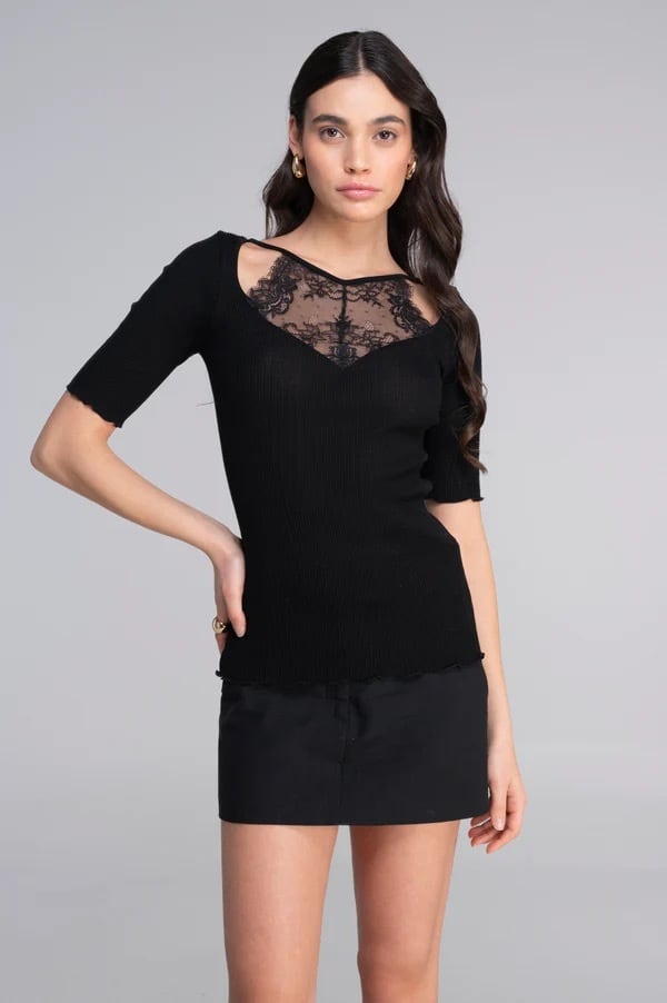 オスカリート Filoscozia 半袖リブトップシャンティリーレース ブラック 3サイズ