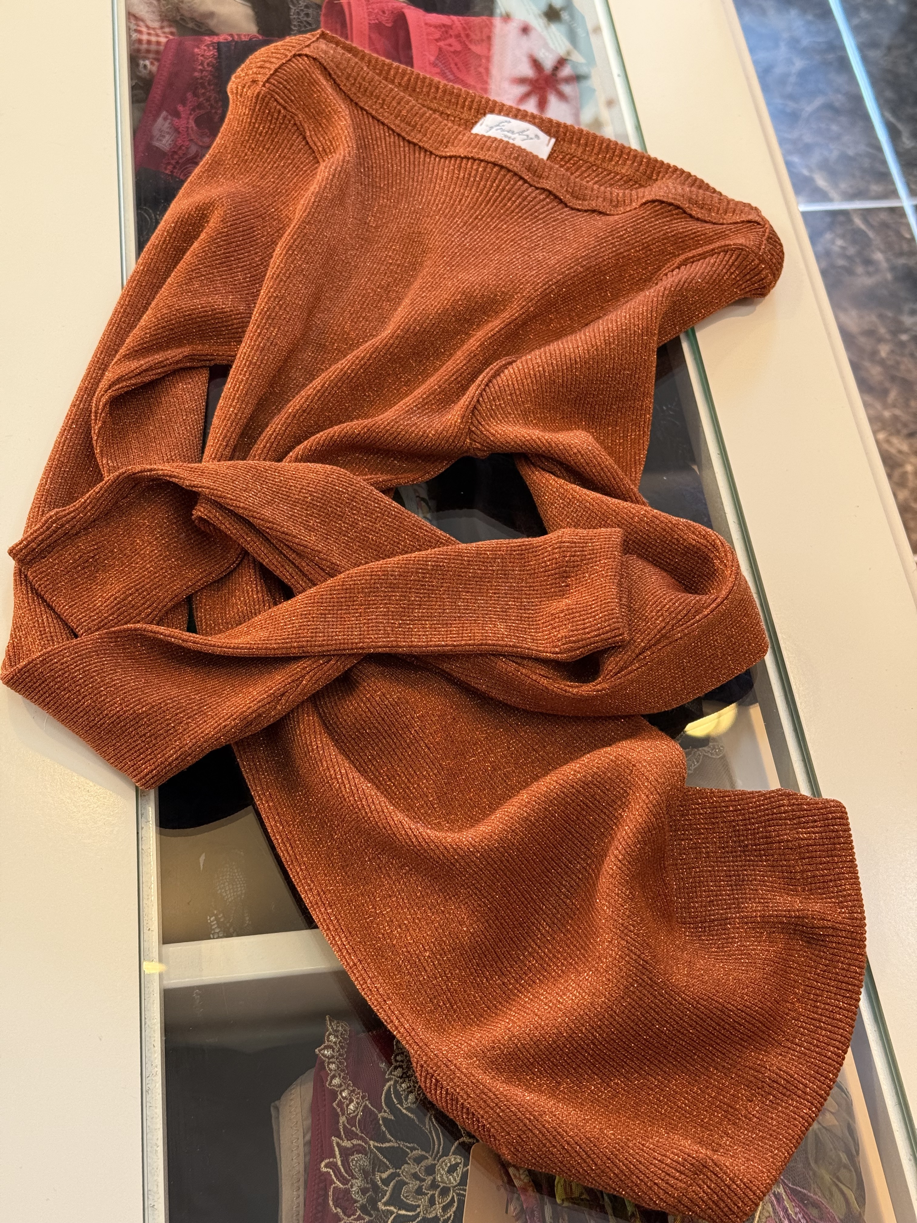 メリノウールとシルクにラメ糸を織り込んだ、輝くような長袖セーター。