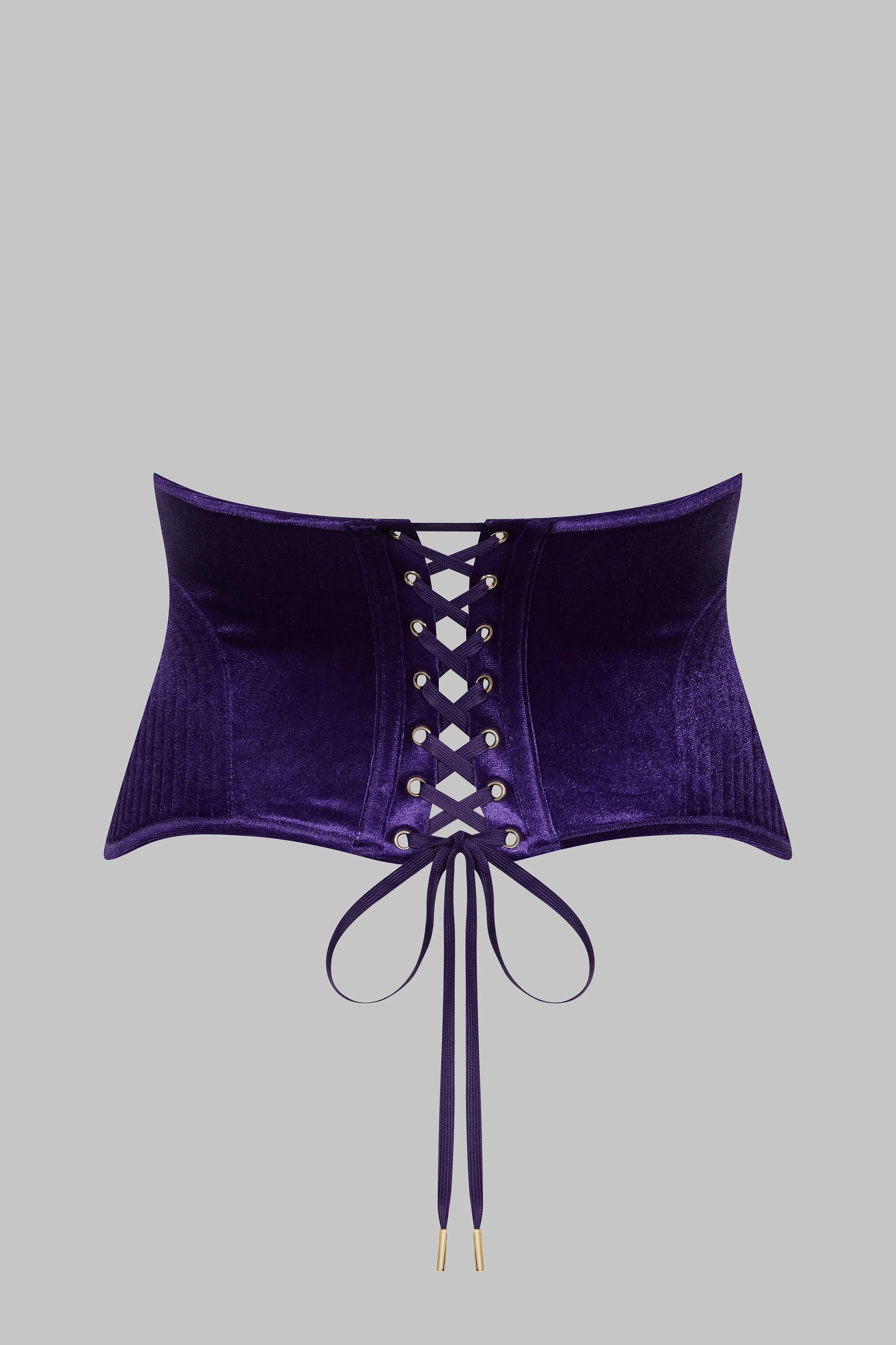 ロココ調のウエストシェイパー。伝統的なコルセットに着想を得たフルベルベット仕様で、ウエストを包み込みシルエットを美しく整えます。柔軟なスチールボーンが締め付け感とシェイプ効果を生み出しつつ、快適な着用感を実現。