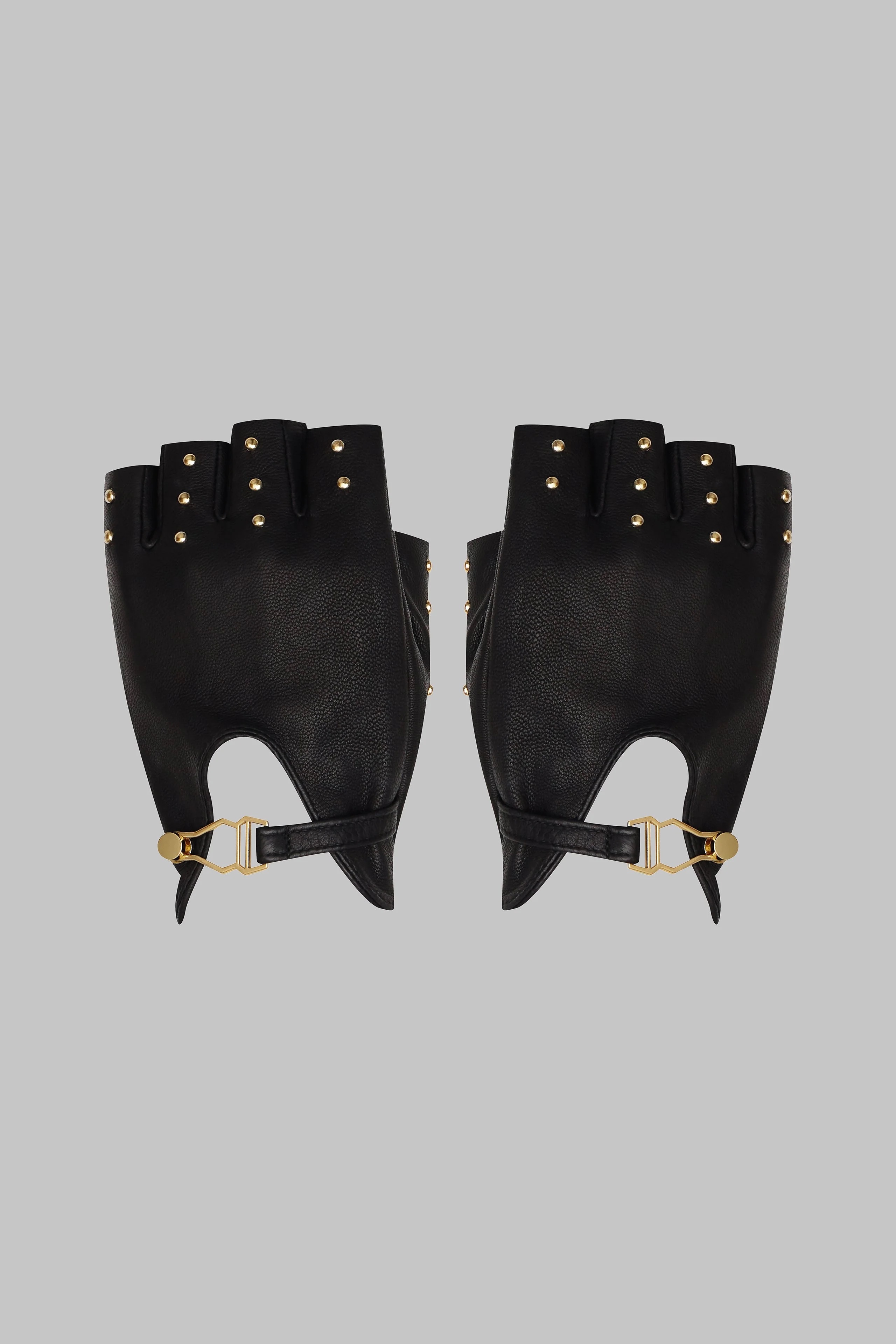 メゾンクローズのミトンは優雅さを体現しています。しなやかな本革で作られ、繊細な手つきで手を包み込みます。各指にはゴールドのスタッズが施され、ロックを思わせるアクセントが繊細な力強さを表現しています。特別なディテール:メゾンクローズが独自に開発したガーターストラップアタッチメントにより、ユニークな留め方が可能です。