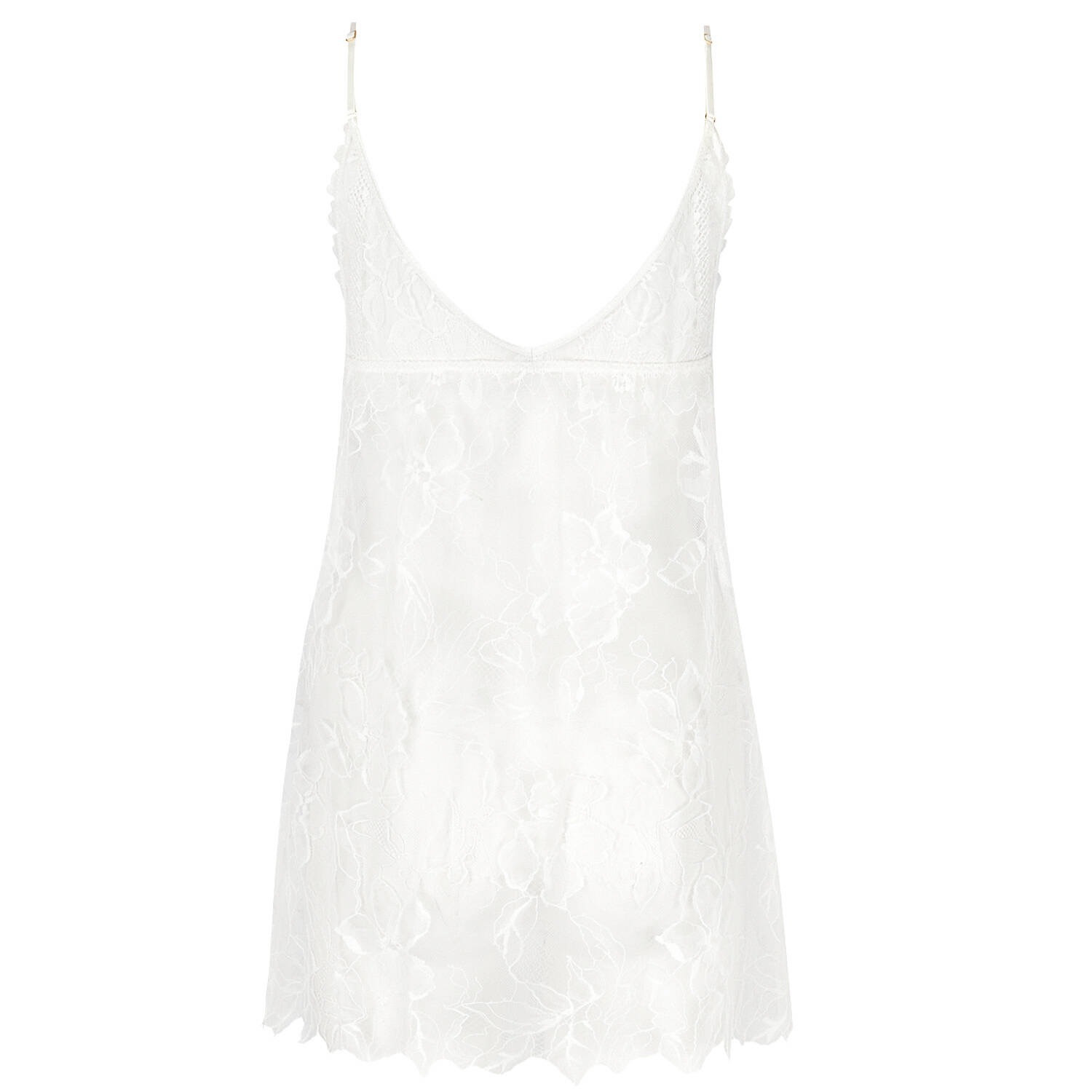 透かし彫りのレースは肌を美しく見せ、流れるようなカットが彫刻のようなエレガンスを描き出します。