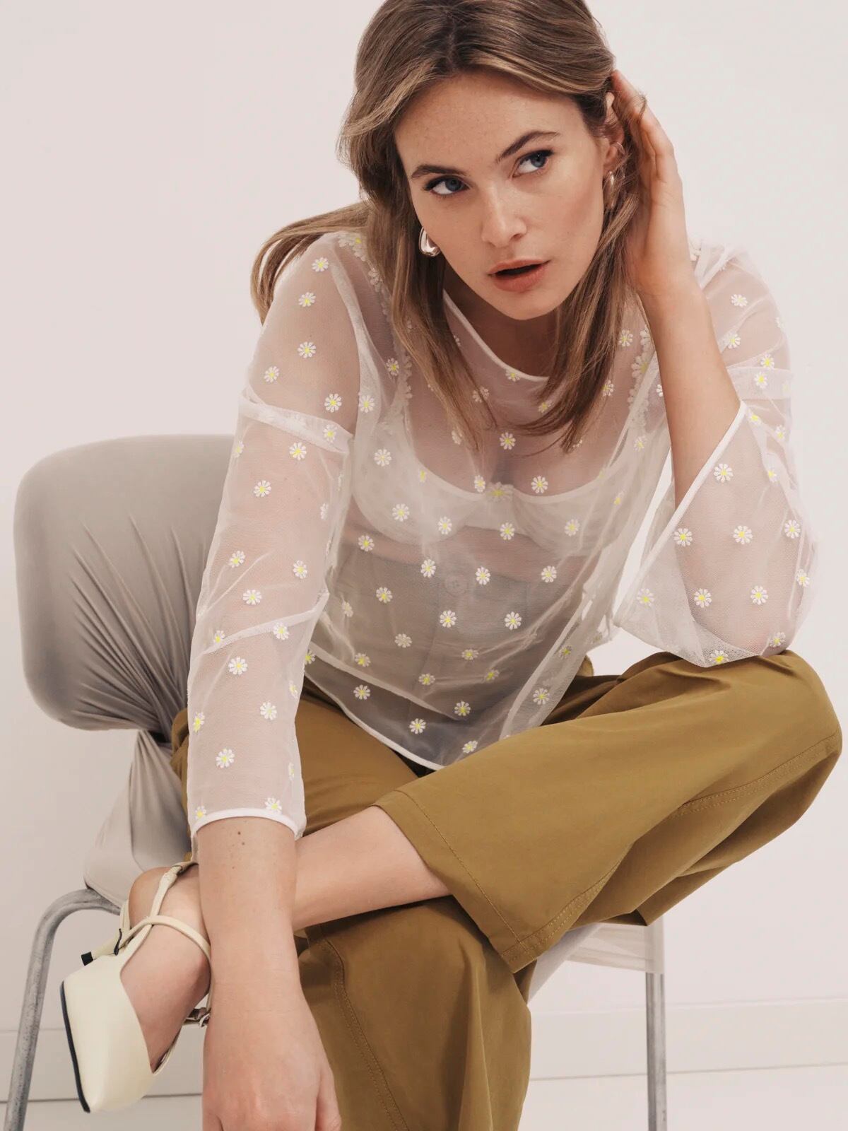 スイス刺繍のデイジーの魅惑的な遊び心で人々を魅了します。