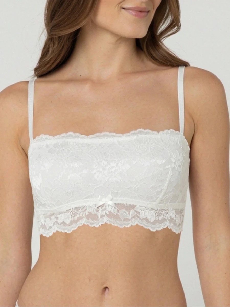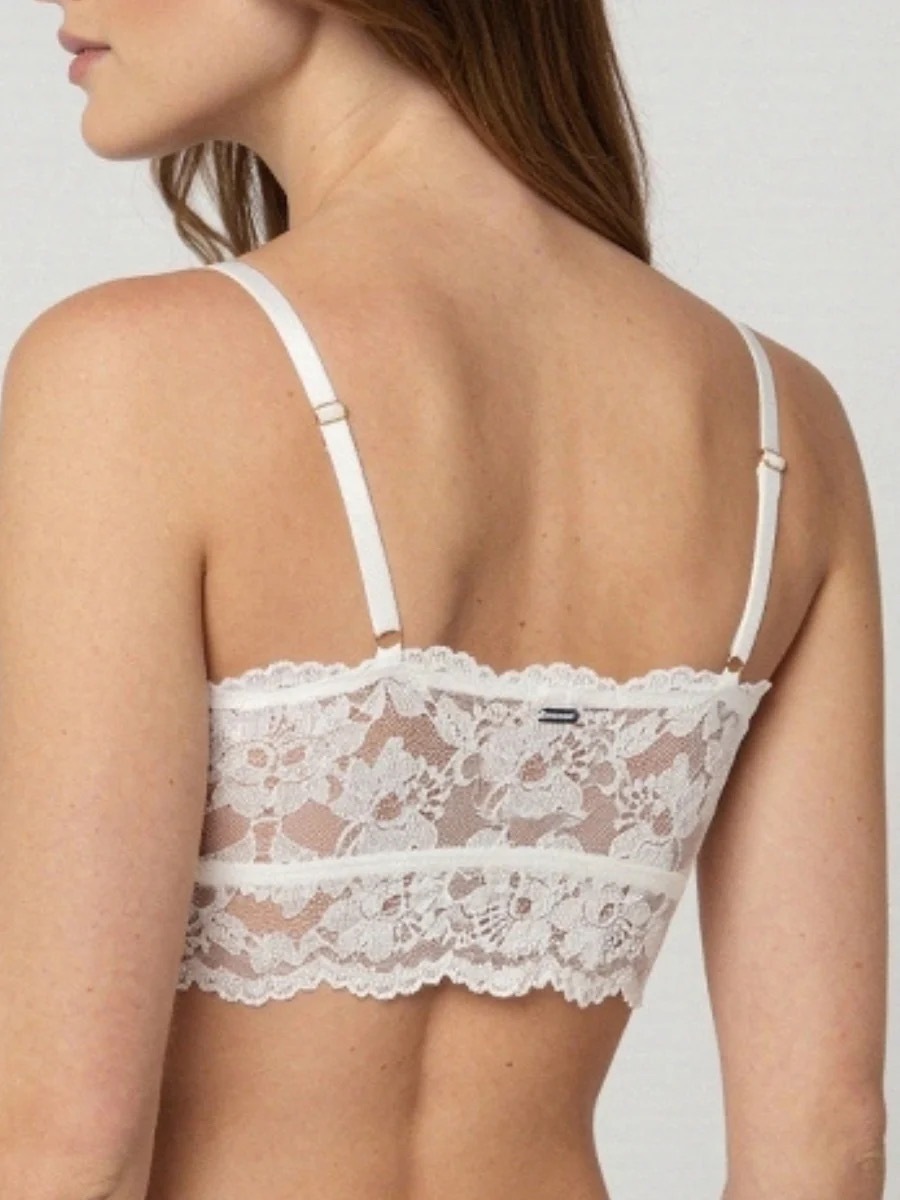 パッドやワイヤーのないレースのトップスは、軽やかで自然なフィット感を提供し、優しくボディラインに沿います。シンプルな構造が、日常的な快適さと優しいサポート。