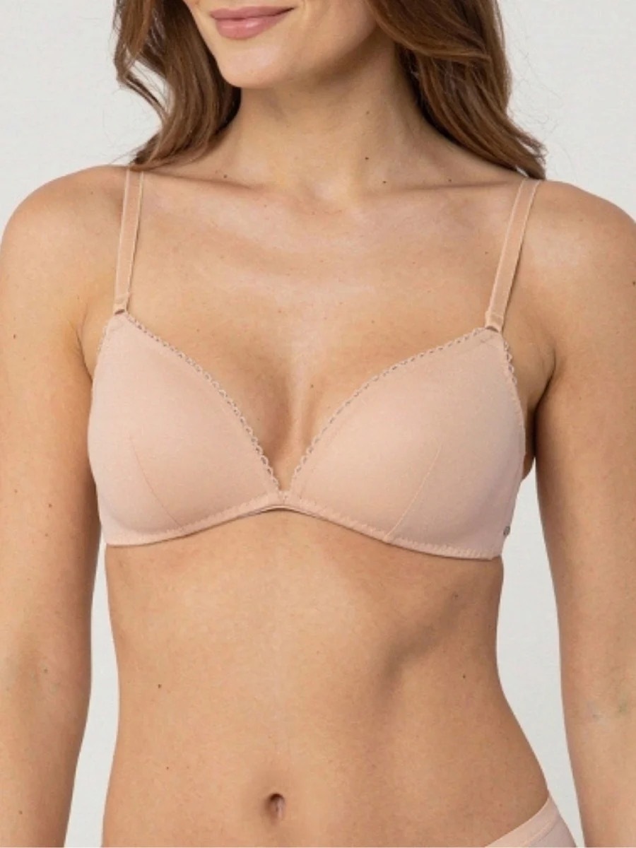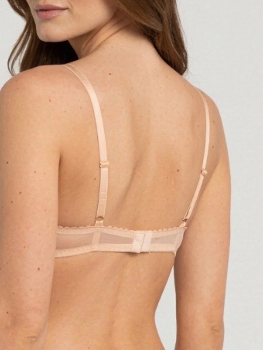ワイヤーなしのパッド入りトライアングルブラは、毎日着る実用的で快適なアイテムをお探しの方に最適です。肌に馴染むような軽やかなチュール素材を使用し、自然なシルエットを引き立てる優しいホールド感と、最大限の自由な動きを楽しめます。