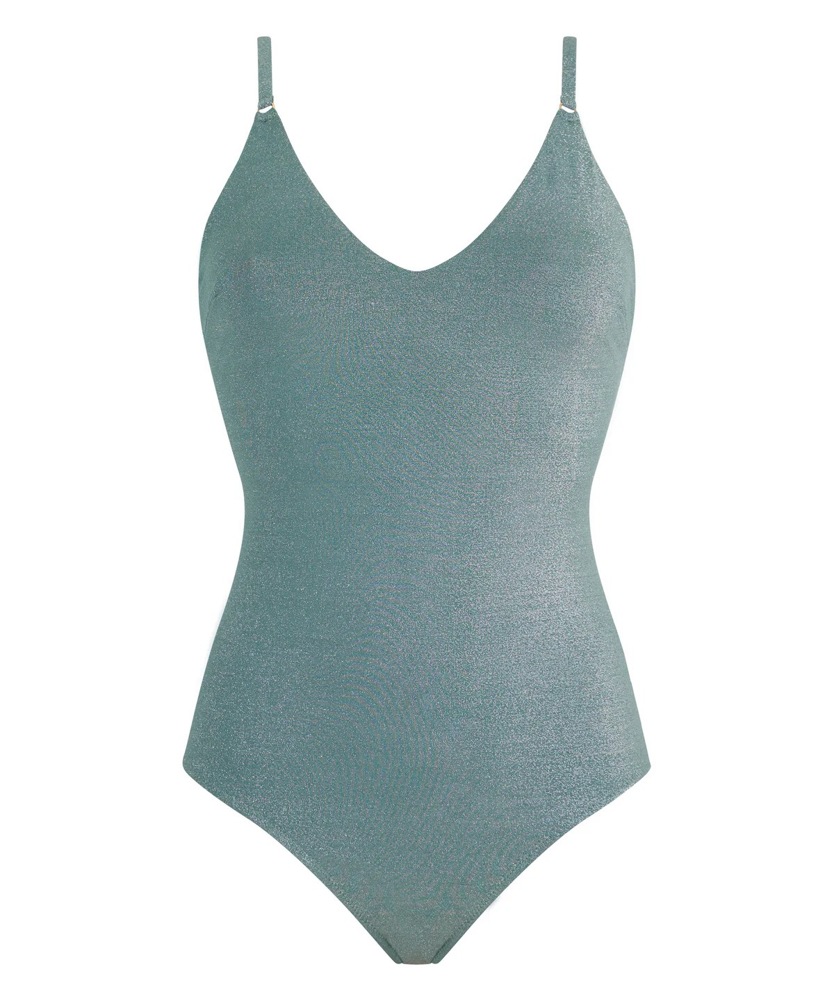 このコレクションの象徴的なアイテムである「サマーグロー・ソフト・ワンピース・スイムスーツ」は、きらめくルレックス糸がアクセントとなった柔らかな生地を使用し、ウエストはフィット感のあるデザインになっています。
