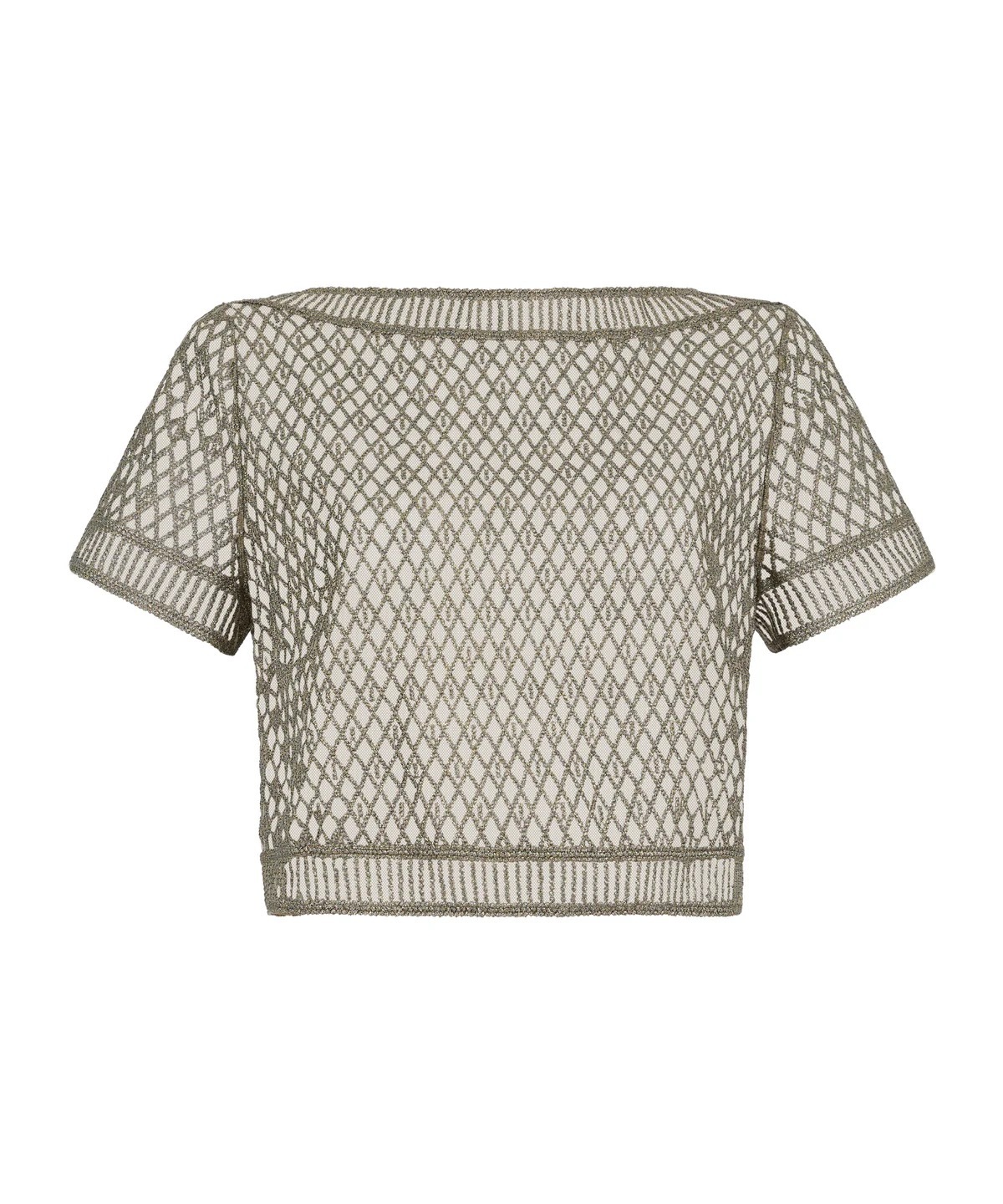 ボートネックの洗練された半袖トップス。卓越したプレタポルテの一着