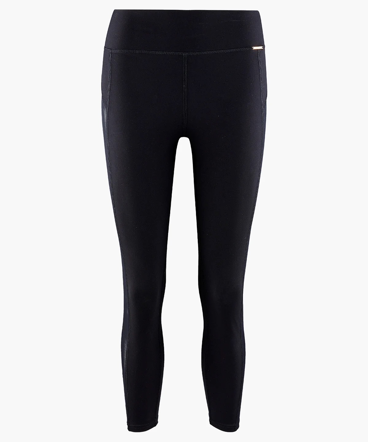 サイドのチュールパネルが脚のラインを美しく引き立てる、スリムなシルエットのレギンス。着心地の良いフラットなハイウエストデザイン。