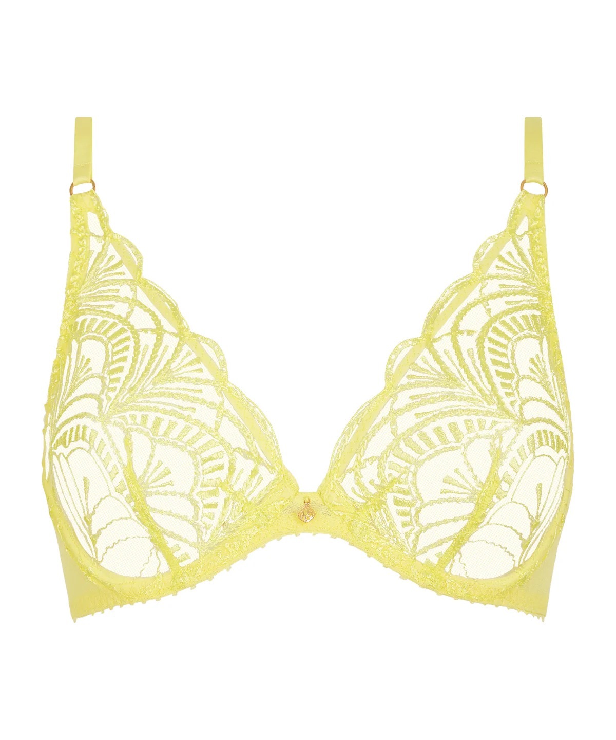 魅惑的な深いデコルテラインを演出する、Vibesのワイヤー入りトライアングルブラは、セクシーでボヘミアンな刺繍が施されたモダンで快適なシルエットでバストを美しく整えます。デコルテ部分には、全体を華やかに彩るゴールドのジュエリーがあしらわれています。背中のストラップは複数のストラップに分かれており、独創的なデザインで背中を美しく演出します。