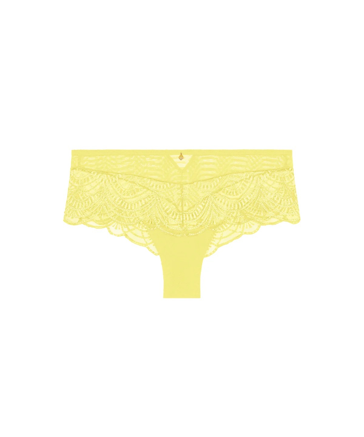 モダンなシルエットが特徴のショーティー「Vibes」は、ローウエストデザインで、日常着として比類のない着心地を実現しています。透け感のある生地に施されたグラフィック刺繍がヒップラインを美しく彩り、お腹を優しく包み込み、後ろからはヒップの曲線を際立たせます。さらに、腰のあたりにはセクシーな小さなスリットが施されています。