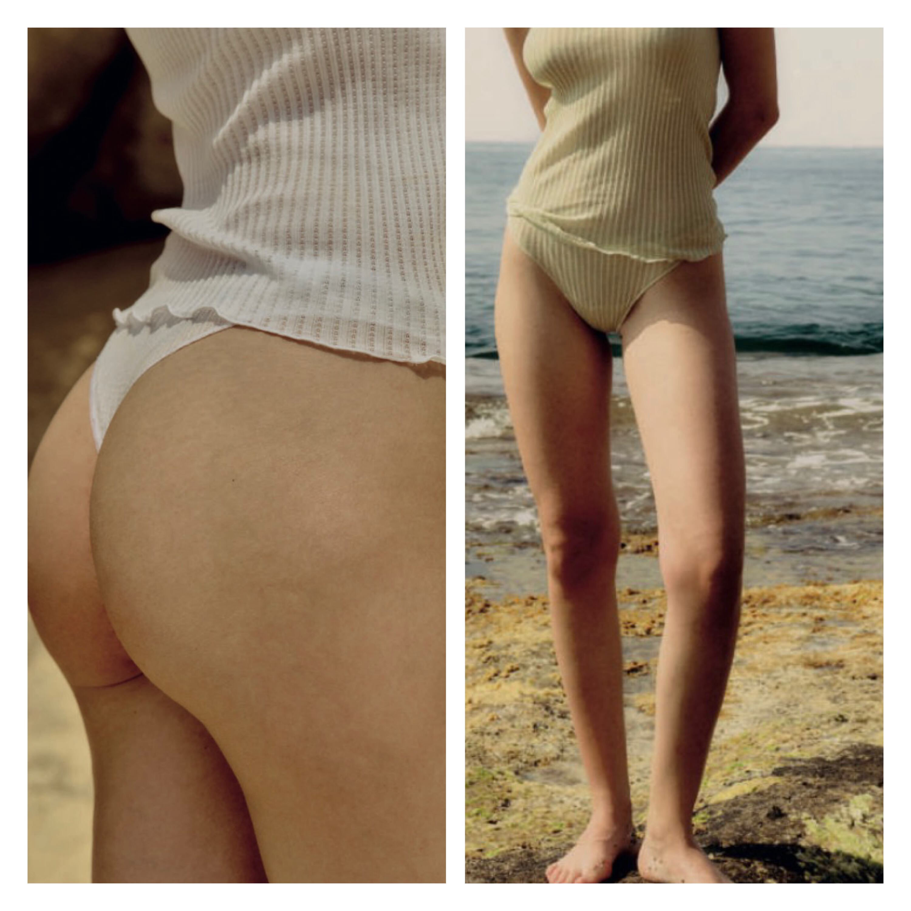 エジプト産マコ綿(Filoscozia®)を使用した繊細なアジュールリブニット生地で作られたローライズ・コットンタンガ。