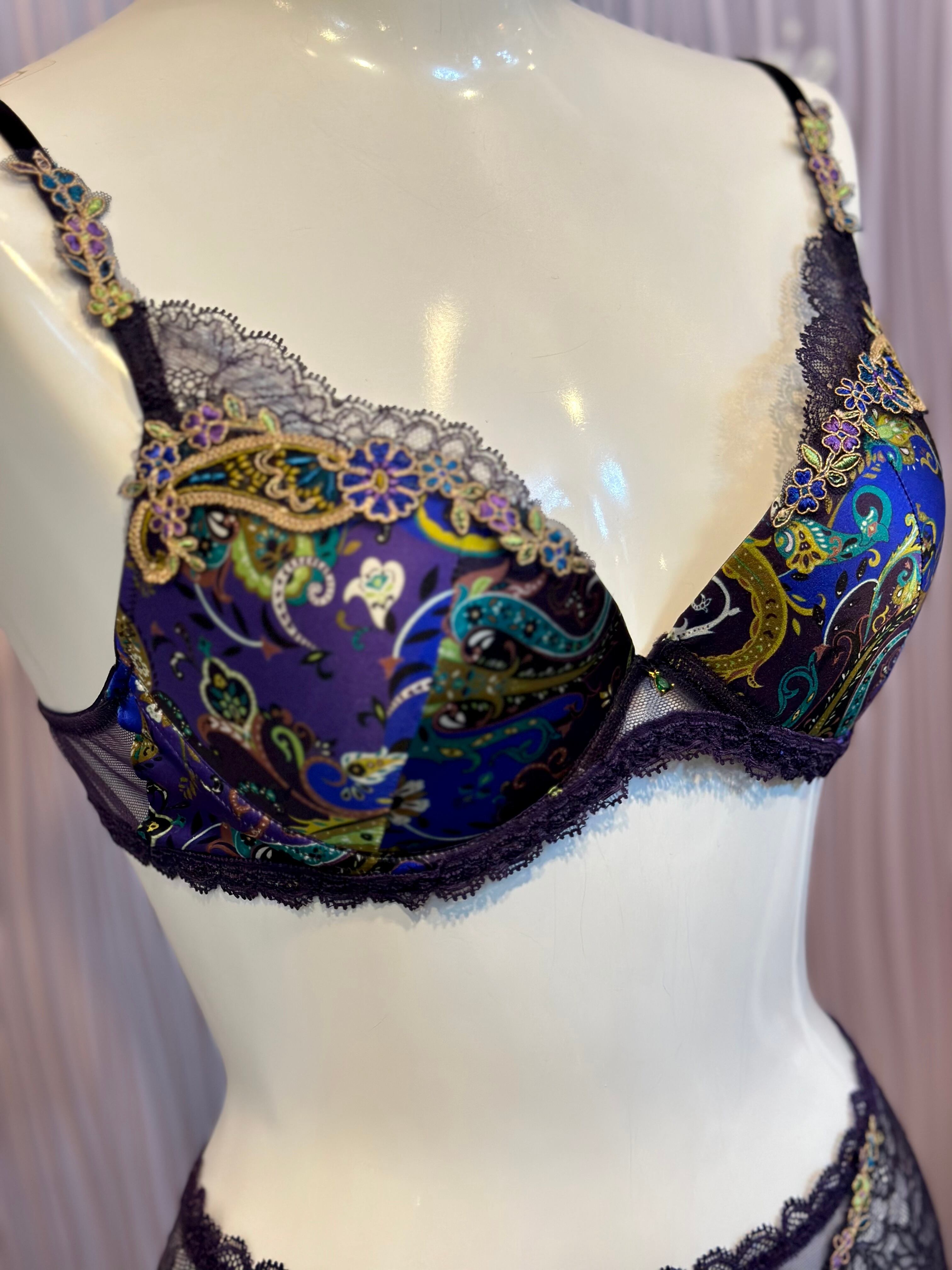 鮮やかなシルクプリントはイタリア製。そのシルクの光沢がカシミール柄の豊かな色彩を