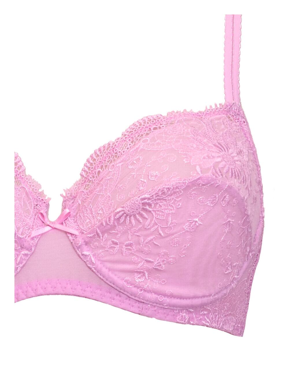 光沢のあるチュールに、立体感のあるトンスルトンフラワーの刺繍を施したアンダーワイヤーフレンチブラです。