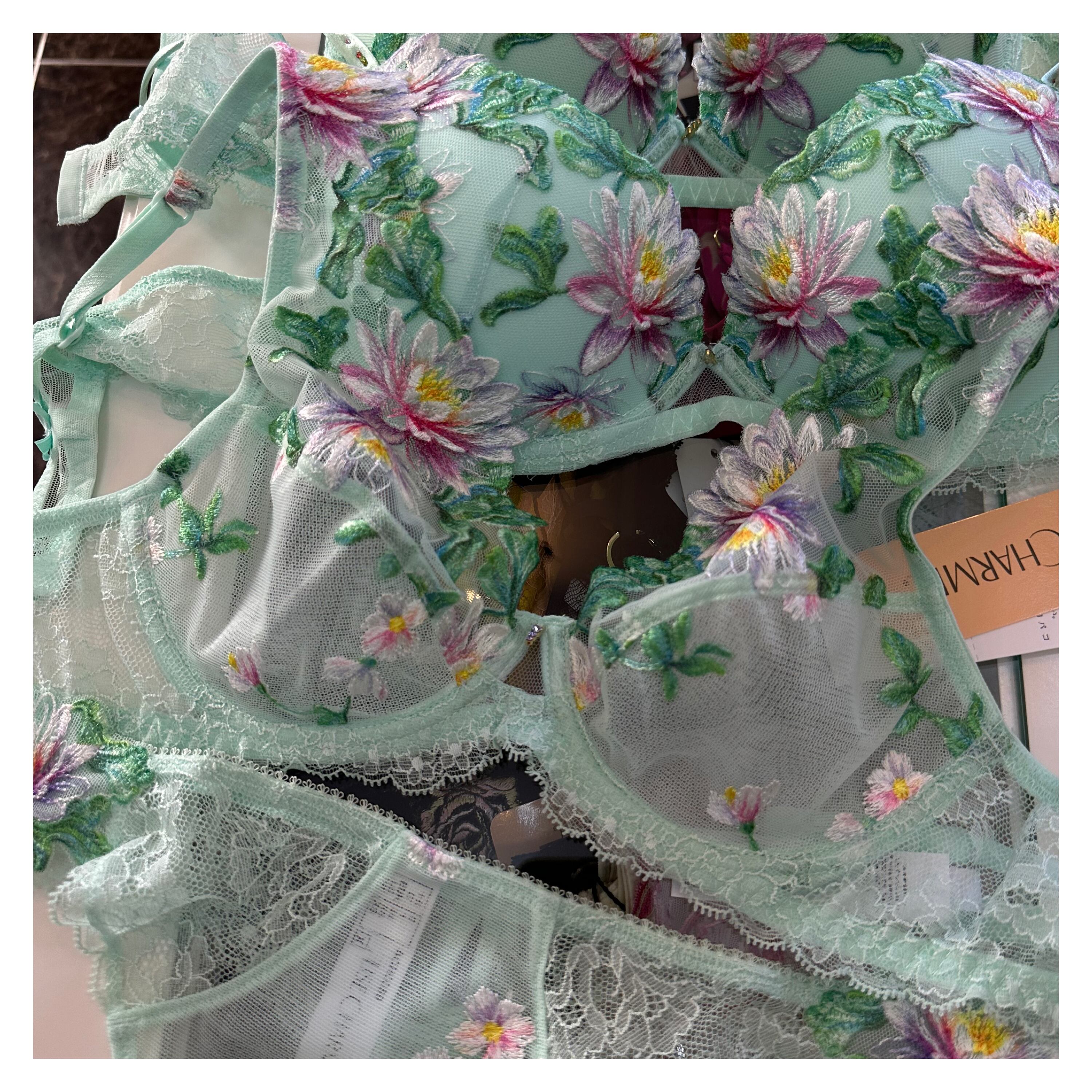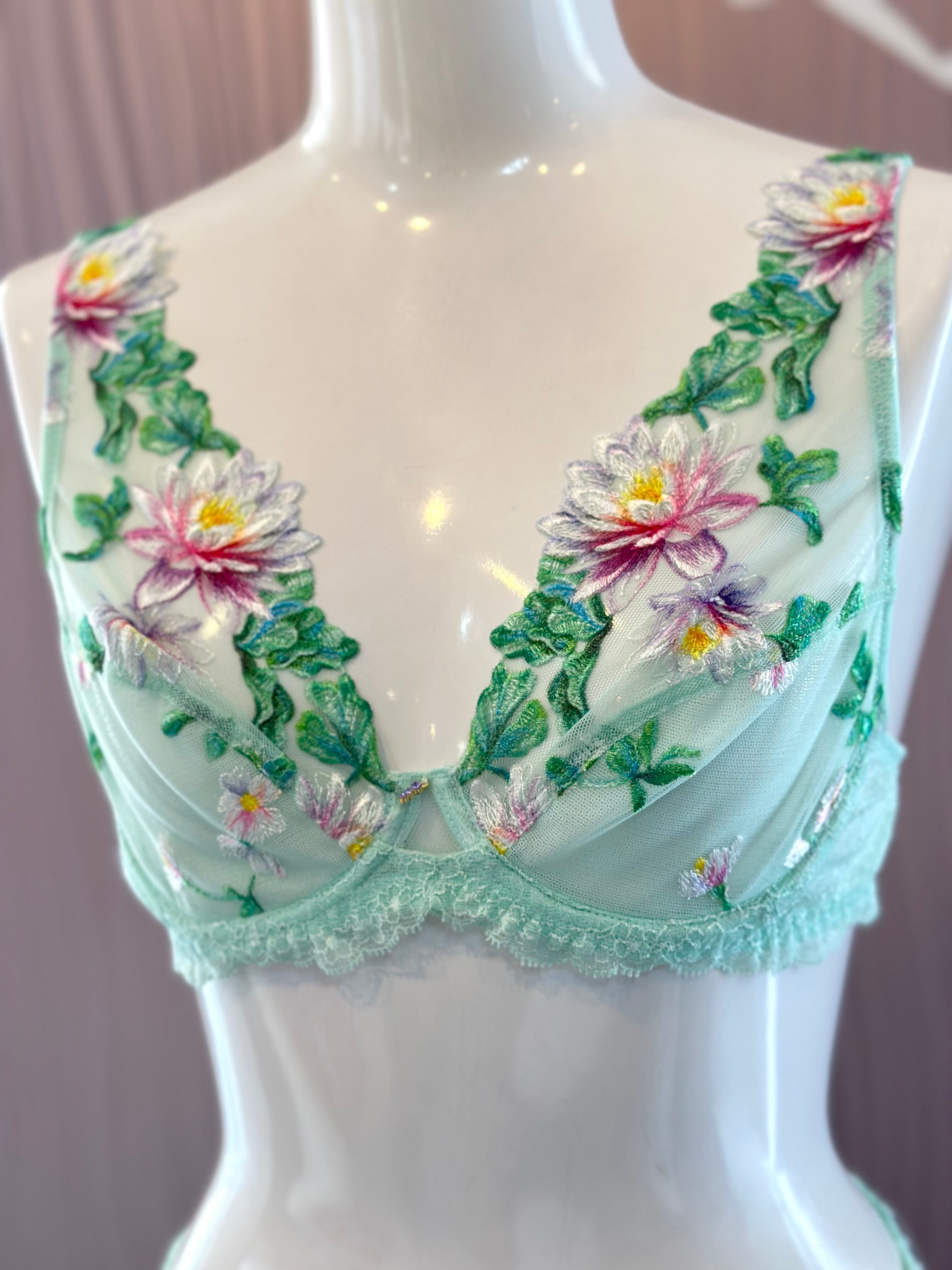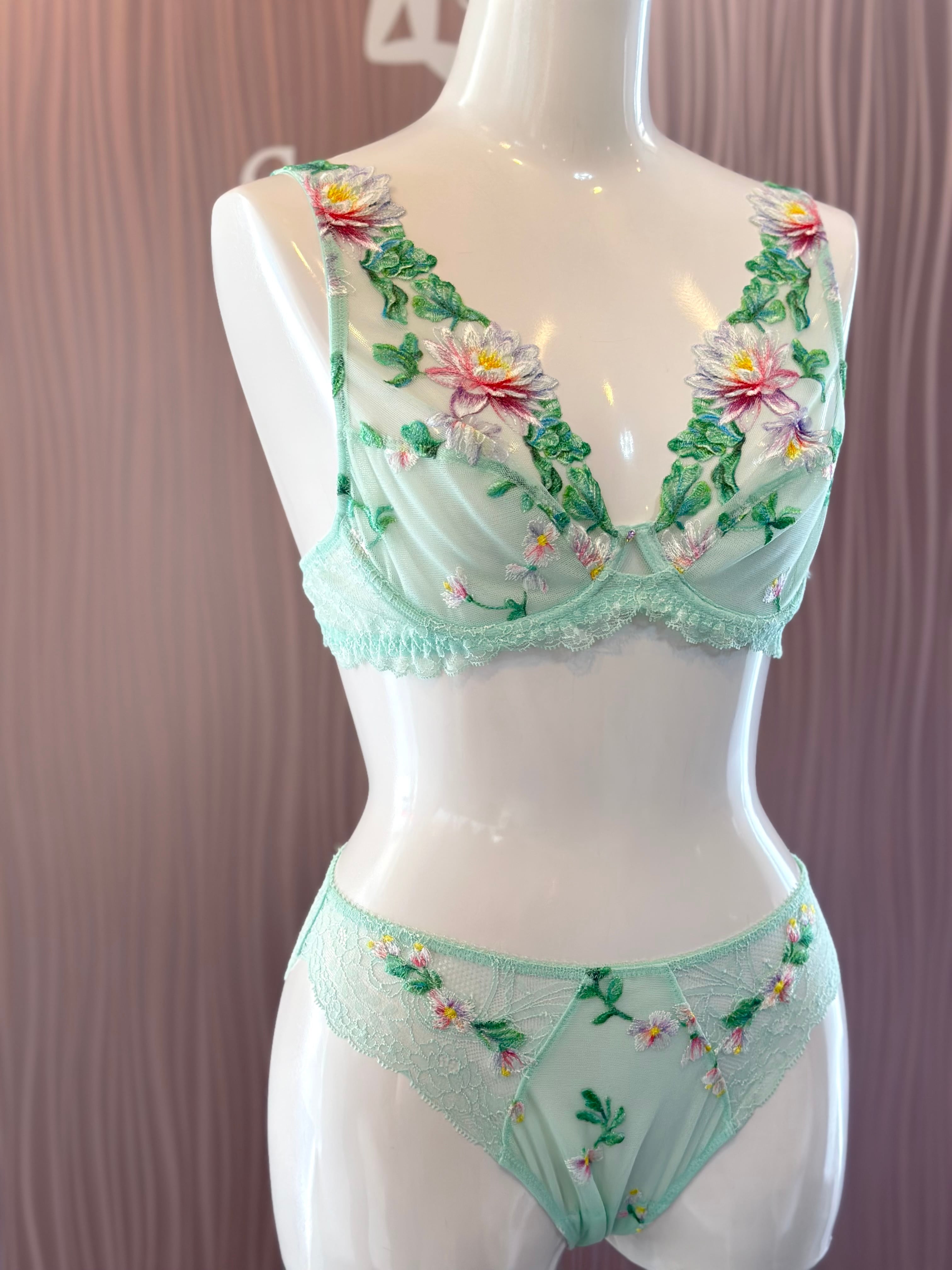 贅沢なリーバースレースが、ランジェリーにさりげない魅惑とユニークさを添えています。アムールニンフェアで自然の魔法を受け入れて。