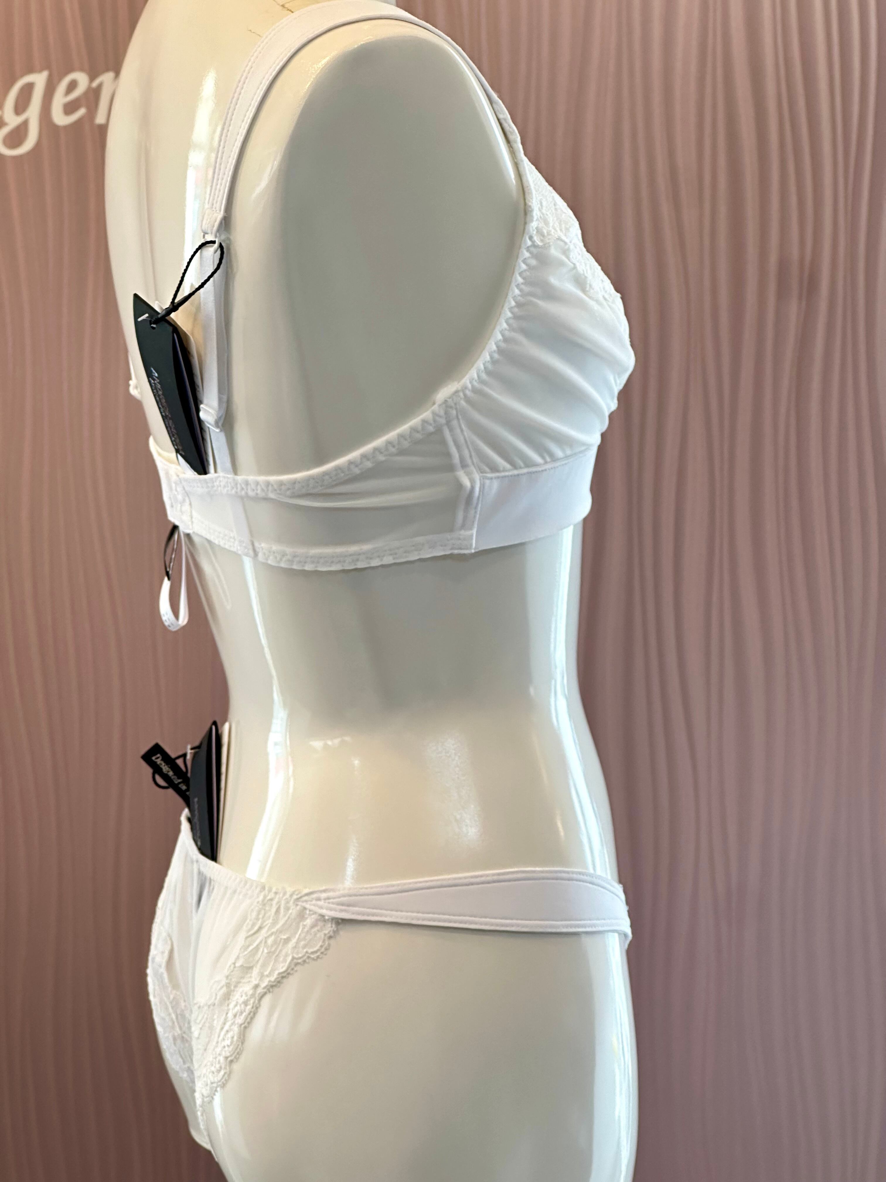 ディオン・コレクションは、透け感のあるチュールとリーバース・レースに花柄をあしらったデザインで、無地の生地とカップ中央の目を引くディテールがさりげないアクセントになっている。個性と強い個性を放つヨーロッパ素材の完璧な組み合わせが、機能的なファッション・コレクションを生み出している。ホワイト100%、フレッシュでベーシックな純白のファン向け。