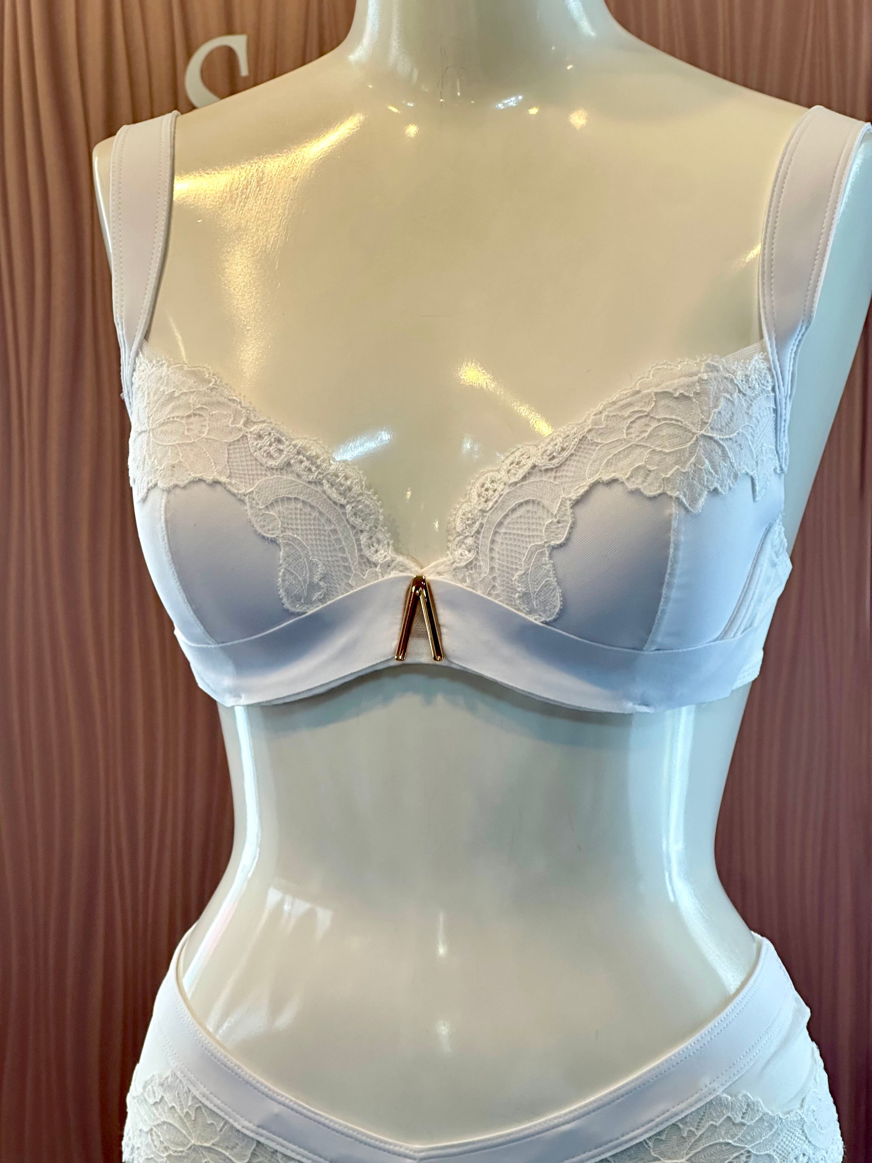 ディオン・コレクションは、透け感のあるチュールとリーバース・レースに花柄をあしらったデザインで、無地の生地とカップ中央の目を引くディテールがさりげないアクセントになっている。個性と強い個性を放つヨーロッパ素材の完璧な組み合わせが、機能的なファッション・コレクションを生み出している。ホワイト100%、フレッシュでベーシックな純白のファン向け。
