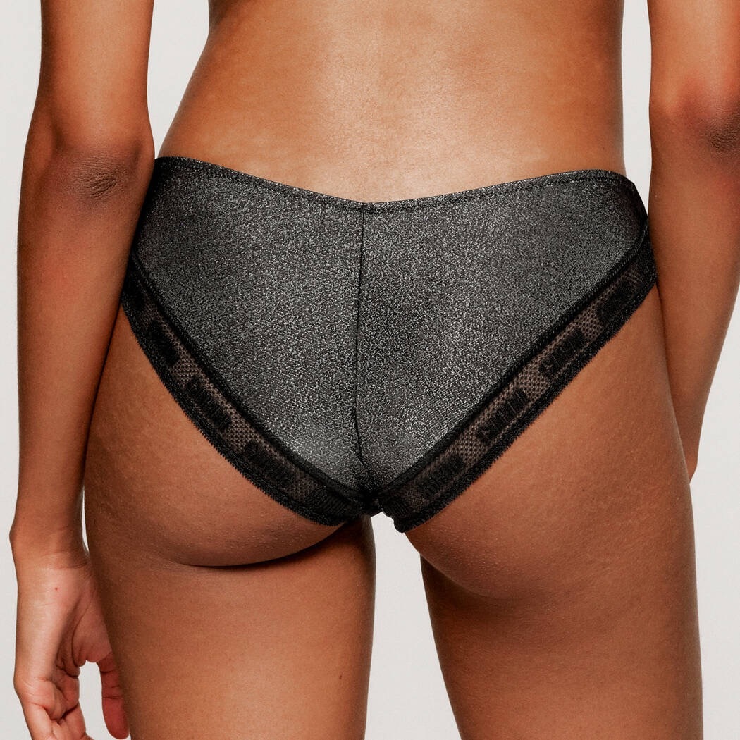 高めのカットと丸みを帯びたウエストラインにより、ノンストップの美脚を実現。ブリーフのバックにはサーダレースバンドがあしらわれている。ラインは見えず、キラールック!