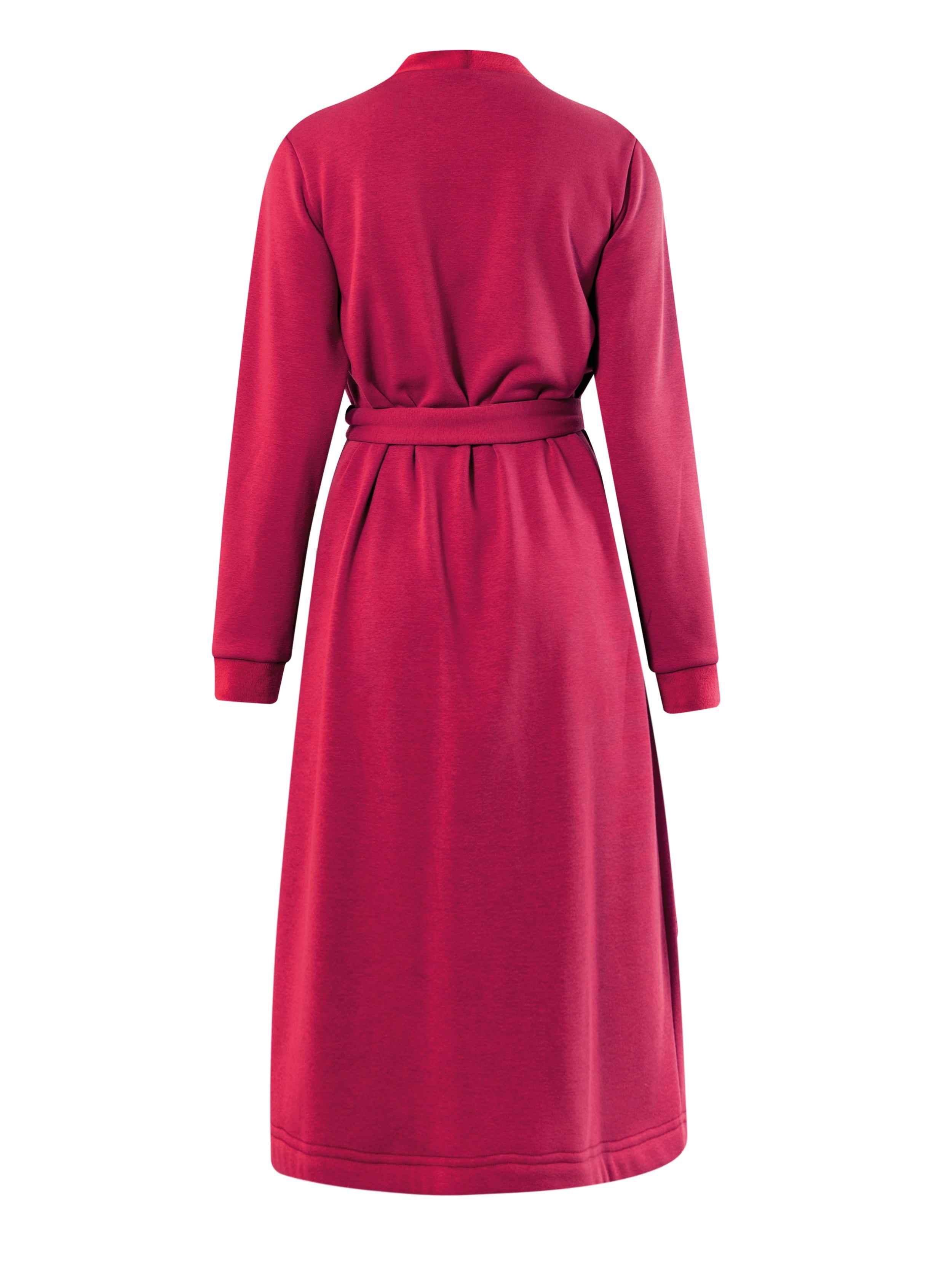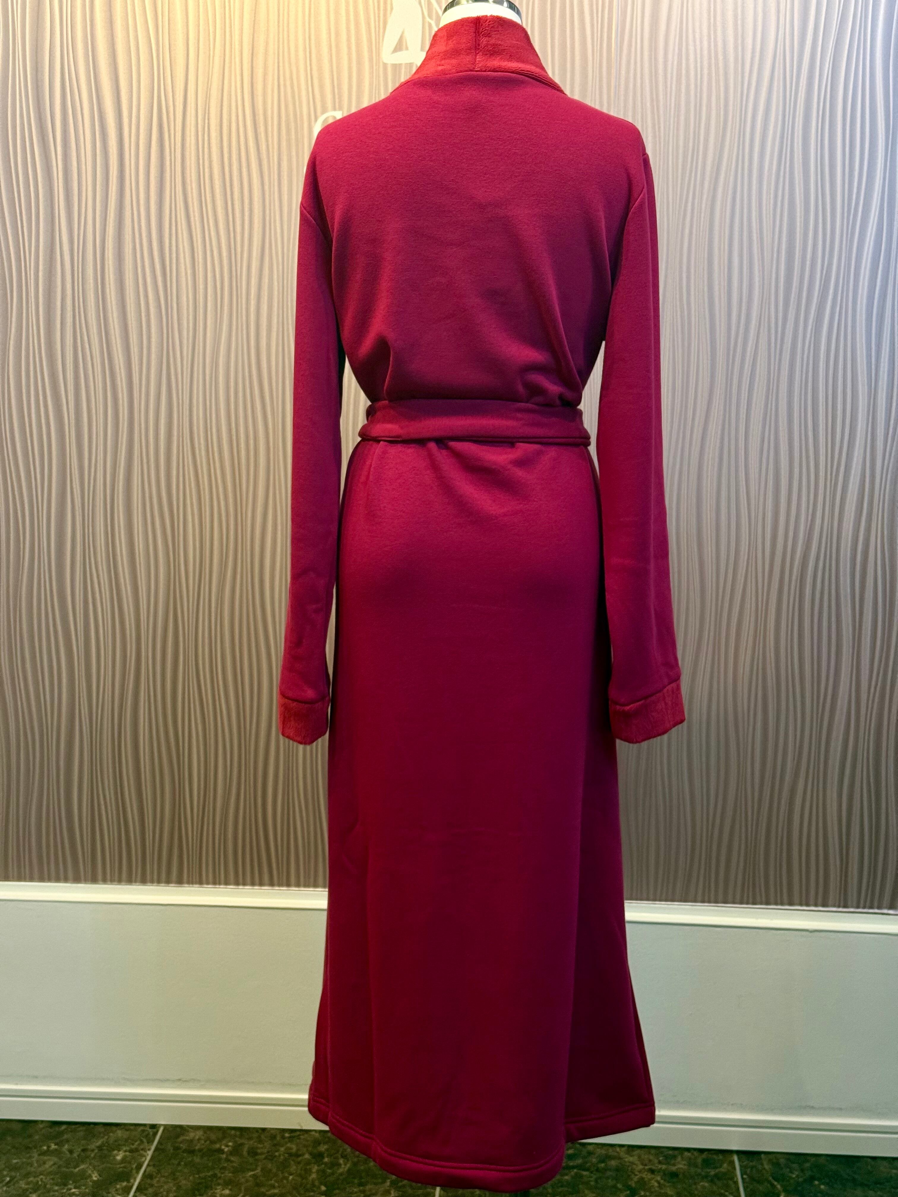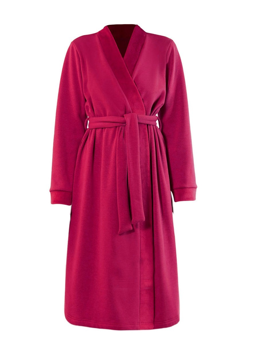 ソフトで暖かな毛皮の裏地と縁取りが施されたソフト・プラッシュ製のベルト付きロング・ドレッシング・ガウン。ミニマルでエレガントなデザインで、サイドポケットと共地のベルト付き。快適さを求める方にぴったりのモデルで、寒い日に最適です。